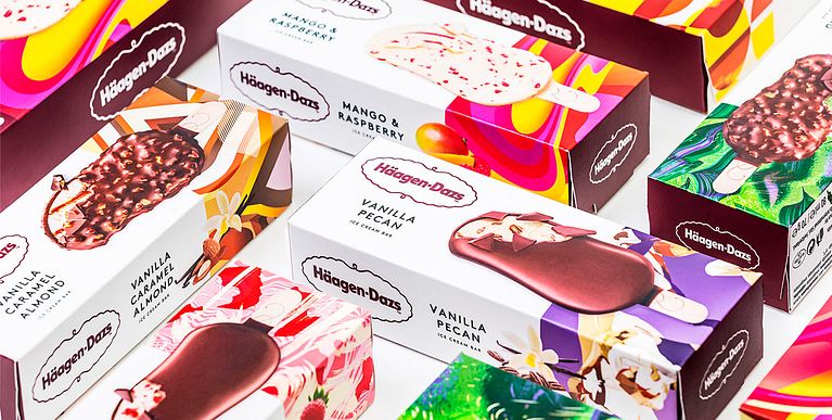 Cuando un producto mantiene la calidad pero deja de atraer al público por culpa de su imagen pasada de moda es momento de hablar de un rediseño. Eso fue, precisamente, lo que pensaron en Häagen-Dazs justo antes de pedirle a 13 artistas de todo el mundo que vistiesen sus tarrinas de helado con patterns que evocasen su enorme variedad de sabores. Mónica Muñoz (@moniquilla), diseñadora de estampados española, ha sido una de las encargadas de poner imagen a las sensaciones que esta delicia helada producen en nuestras papilas gustativas.