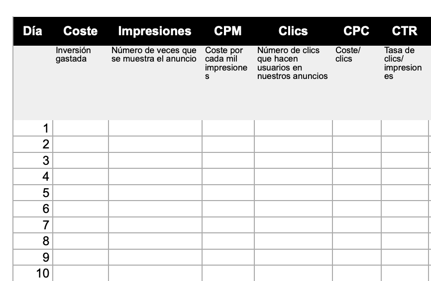 Descarga gratis una plantilla para seguimiento de campañas de Ads