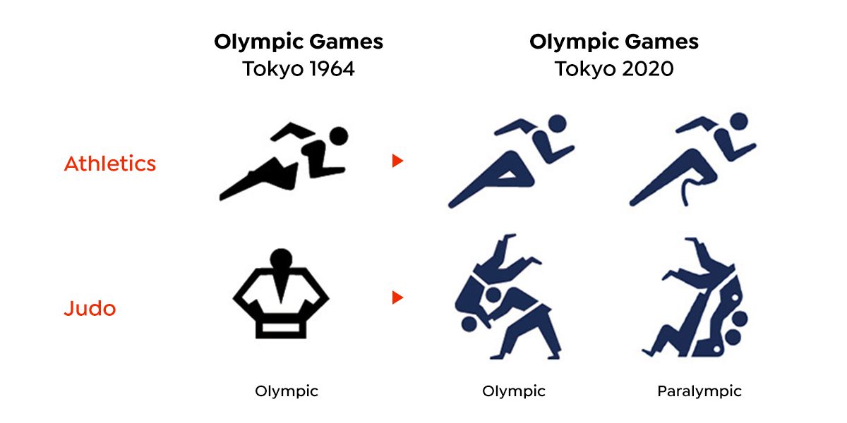 Los primeros pictogramas deportivos en ser introducidos a gran escala fueron los de Tokio 1964, y surgieron de la necesidad práctica de comunicarse visualmente con una gran cantidad de atletas y espectadores internacionales. El crecimiento de la globalización, y el hecho de que muy pocas delegaciones olímpicas podían hablar japonés, obligó a buscar una solución elegante para cerrar las brechas lingüísticas y culturales.