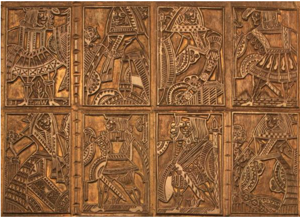 Entre los siglos XIV y XV, se empezaron a producir a gran escala imágenes sagradas y naipes en xilografía en madera. Antes había que diseñar y colorear estas cartas una a una, lo que hacía que el proceso fuera lento y muy caro, pero las reproducciones por el sistema de xilografía hicieron que se abaratara su producción y venta.