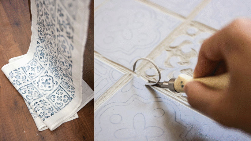 El estampado, también manual, se hace a ojo, alineando cada bloque en la tela para crear un patrón. Es una de las técnicas de impresión más antiguas y todo apunta a que se originó en China, donde se han encontrado los ejemplos más antiguos, sobre seda, que datan del año 220 d. C.