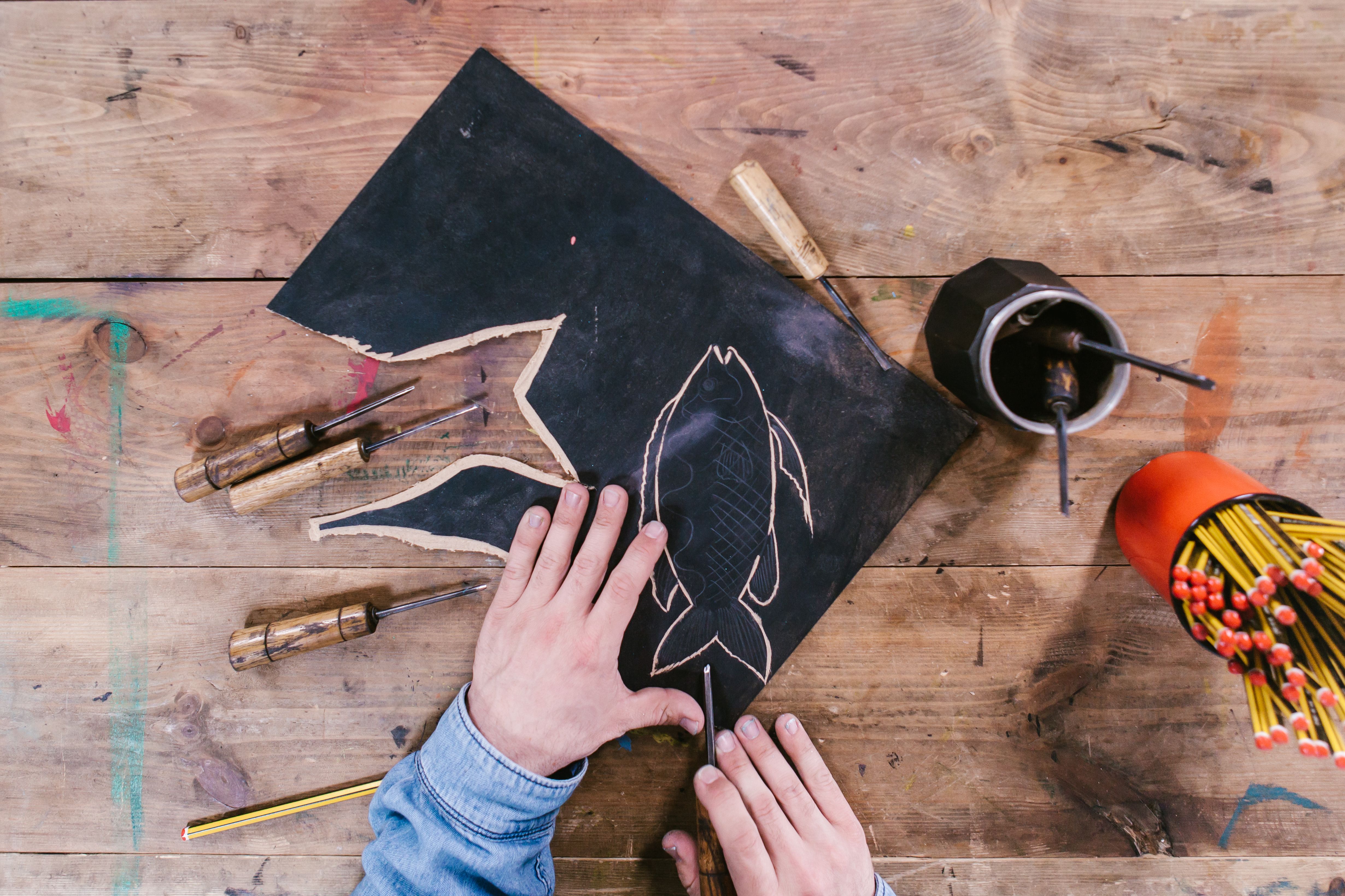 Para fomentar la creación con estas técnicas, Pablo Salvaje comparte una lista con algunas herramientas básicas que están al alcance de todos, para que puedas empezar a trabajar con xilografías. Todas son fáciles de encontrar y es sencillo trabajar con ellas, así que puedes ponerte a dar forma a las ideas que tienes en mente.