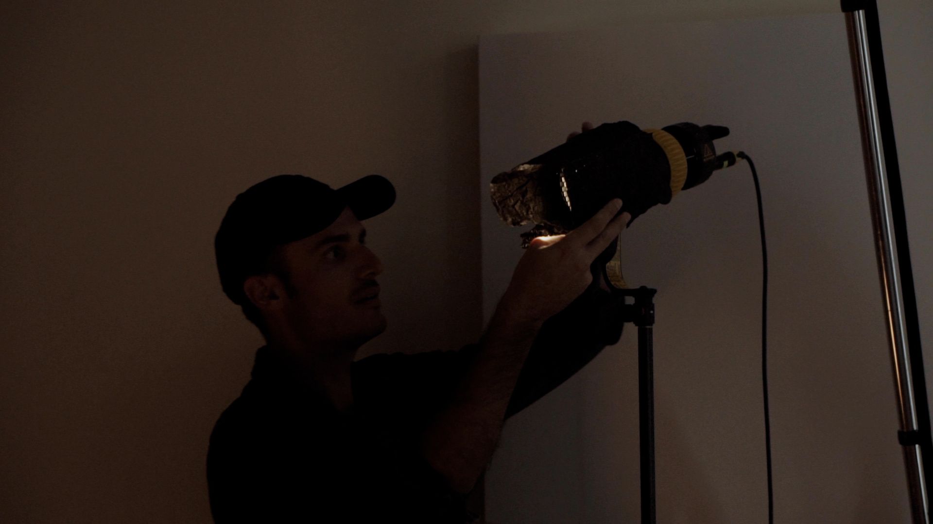 A continuación, direcciona esta luz para que incida sobre el personaje. Puedes acentuar el efecto colocando alrededor del dedolight led una cartulina negra o cinefoil para concentrar más la luz alrededor del personaje.