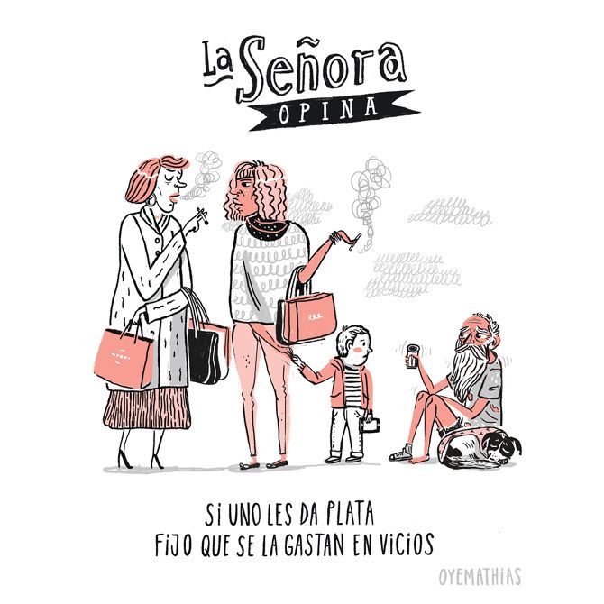 A través de su serie donde todo mundo opina (el jóven, la señora, el señor, étc) da su creativa perspectiva sobre cómo a veces el problema de la sociedad no es opinar, sino la incongruencia del comentario y la falta de empatía con el otro.