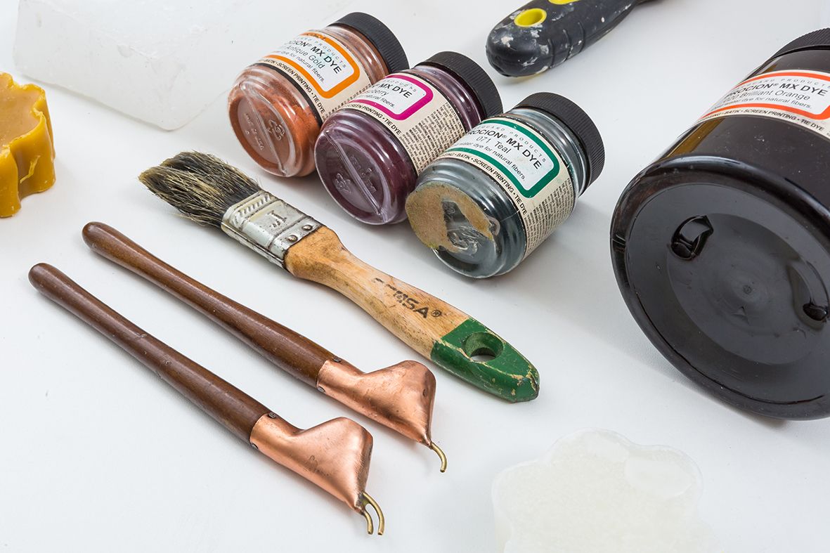 - Los utensilios, como el tjanting (herramienta similar a un bolígrafo que se usa para aplicar la cera) y las ollas.