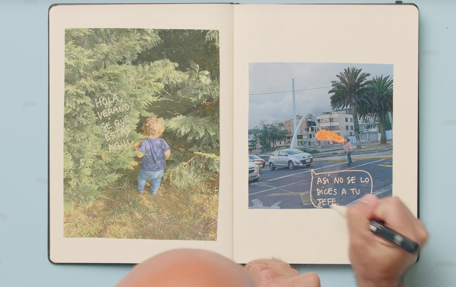 Las fotos que suele usar para este ejercicios son paisajes, situaciones familiares o cotidianas. Pensando y dedicándole un poco de tiempo, explica, puedes incorporar mensajes o textos y convertir las situaciones en otra cosa.