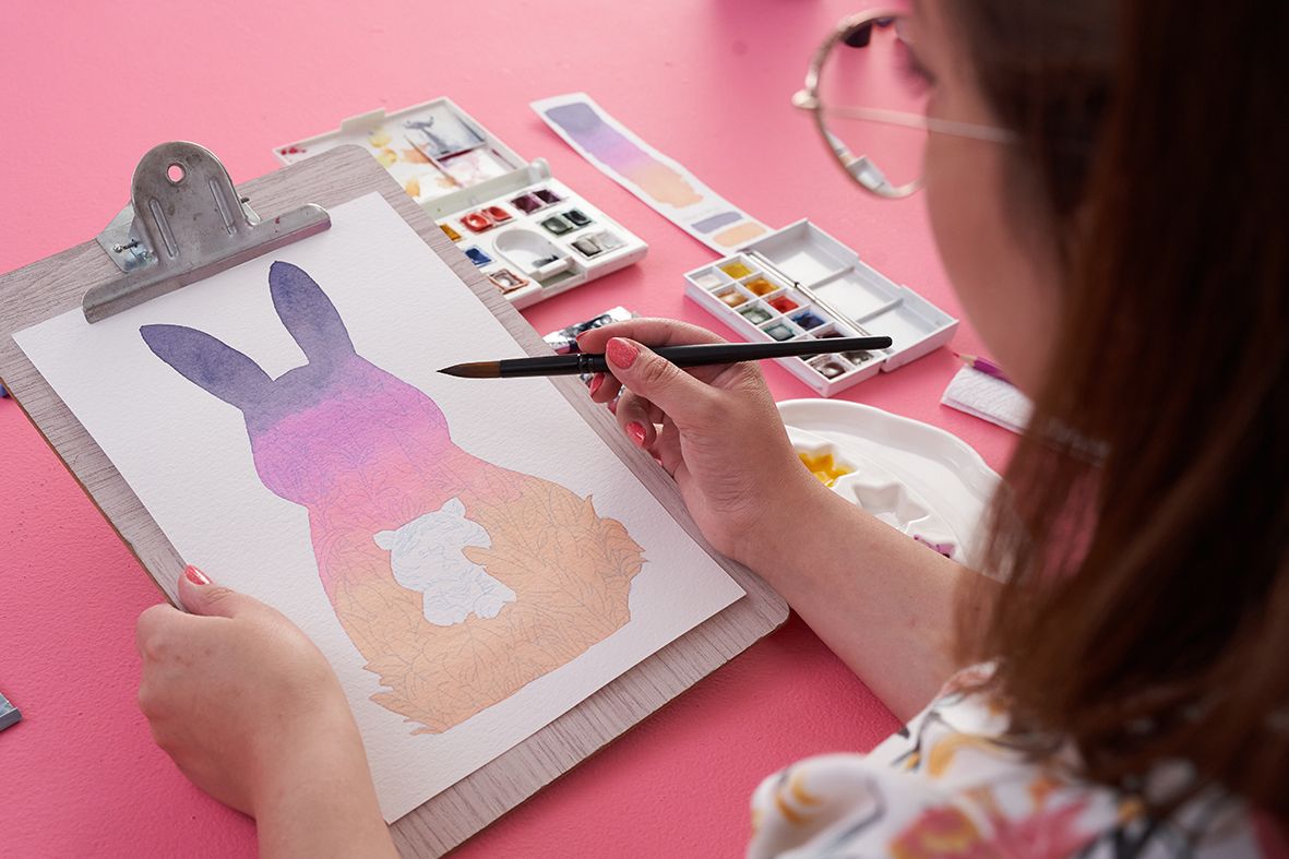 Si quieres aprender más, deberás apuntarte al curso Acuarela en negativo para ilustración infantil del que se extrae esta guía. En él, Alinailustra te enseñará a darle profundidad y encanto a tus ilustraciones a través de la acuarela en negativo.