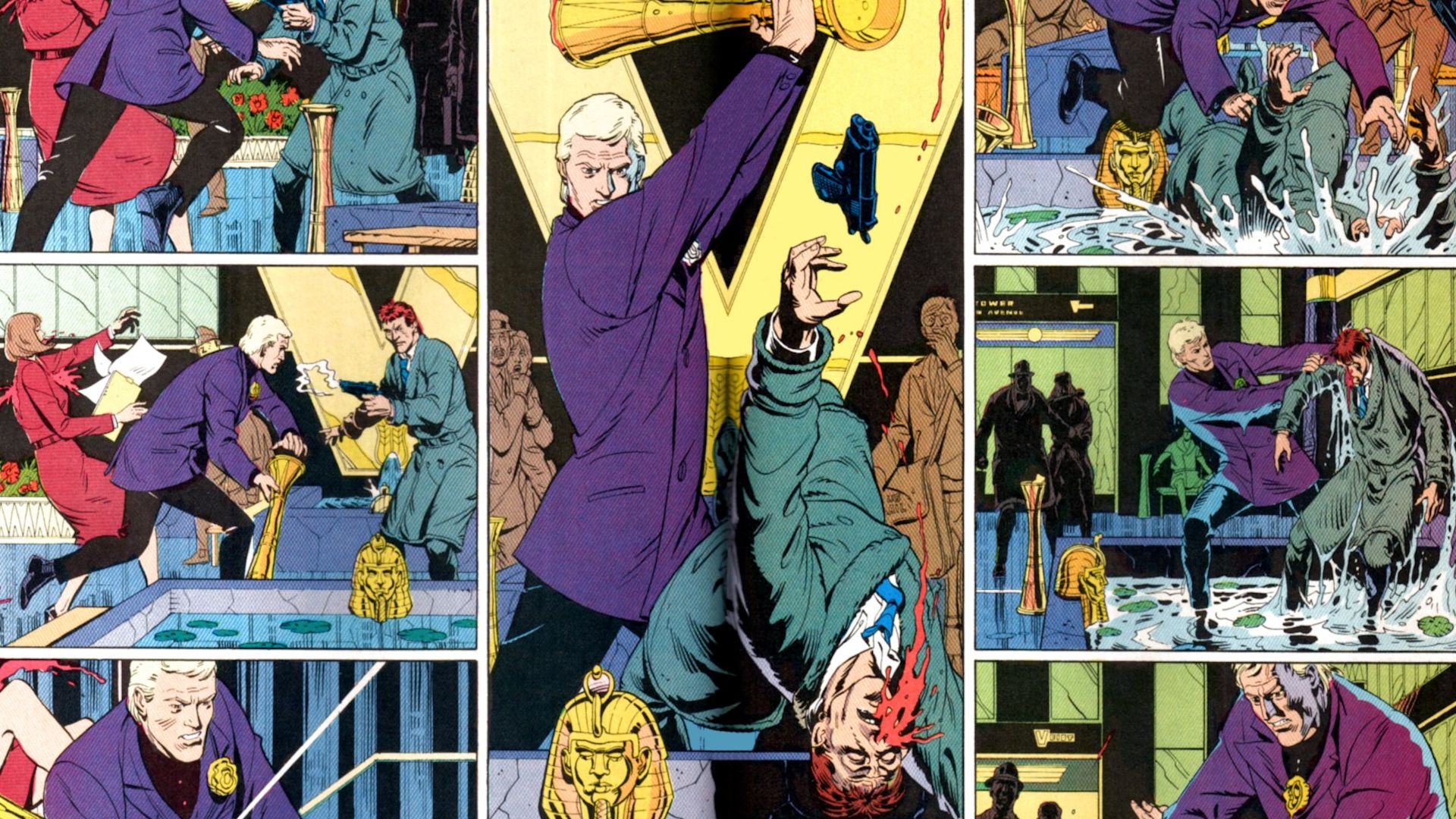 El número 5 del legendario cómic de Alan Moore ‘Watchmen’ se llama Aterradora Simetría… y no es casualidad. En este capítulo, publicado en 1987, todas las composiciones son reflejo unas de otras, ya sea a través del color, a nivel narrativo, de fondos y también de acción.