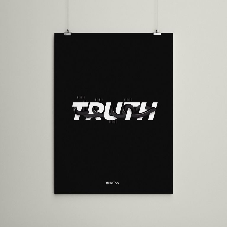 A la hora de observar de qué forma integramos estas nuevas influencias, Javier recomienda hacer foco en el trabajo de Dina Benbrahim, una creativa árabe multidisciplinaria que, a través de una lente feminista, busca incorporar a sus diseños una nueva perspectiva cultural. Como ejemplo, puedes ver en esta imagen la forma en que la diseñadora decide integrar la palabra 'verdad' ( حقيقة en árabe y truth en inglés), para dar una nueva connotación a la expresión Me Too.