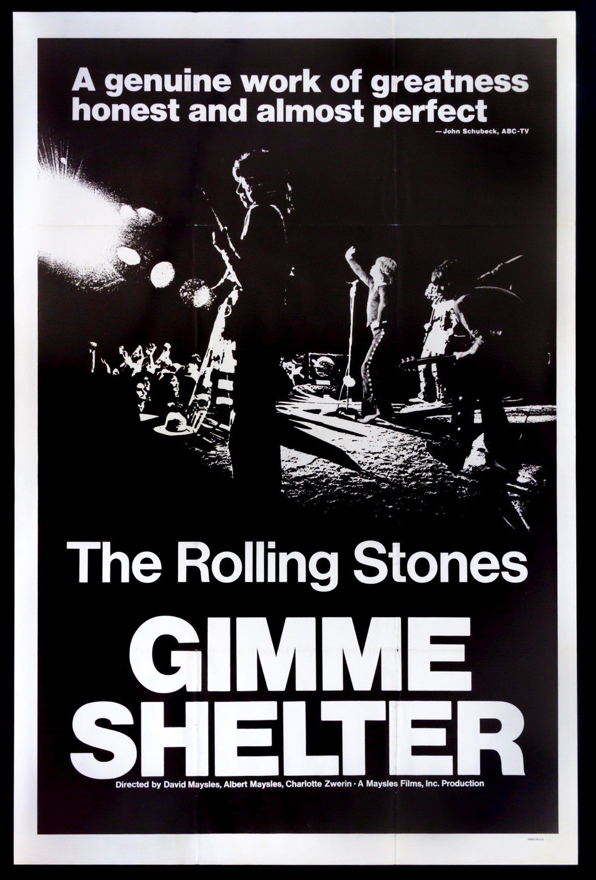 Este documental registró la tragedia del último concierto de la gira en el Altamont Speedway en San Francisco, California, en donde un joven del público —Meredith Hunter— fue asesinado por integrantes de los Hell’s Angels, organización criminal asignada a la seguridad del evento, al que asistieron más de 300 mil personas. Si quieres verlo, está disponible en YouTube.