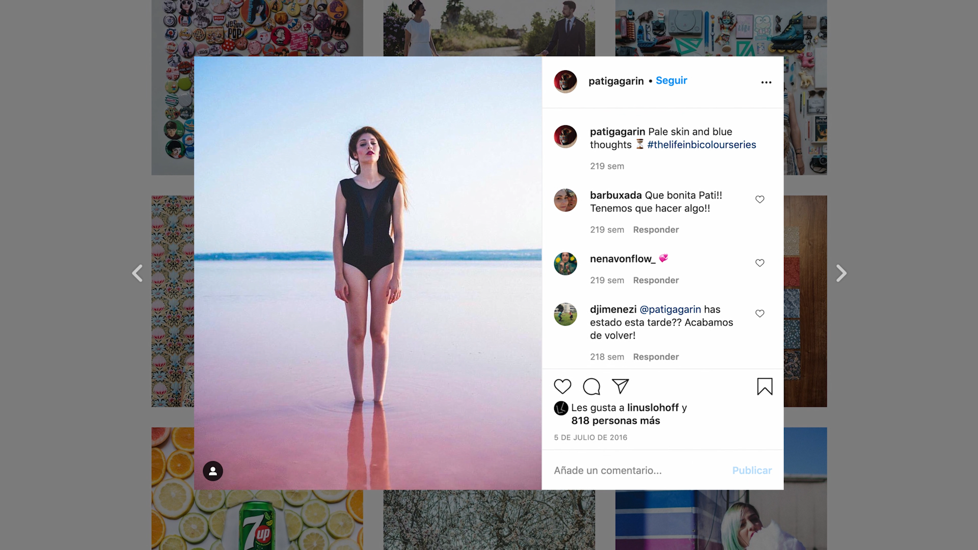 La fotógrafa Pati Gagarin (@patigagarin) descubrió después de estudiar la carrera de Arquitectura que su verdadera pasión era la fotografía. Su talento, estilo y constancia la han llevado a convertirse en fotógrafa profesional colaborando con marcas como Adidas, Reebok, Vogue España, Google, Fjord, 7up y Aperol.