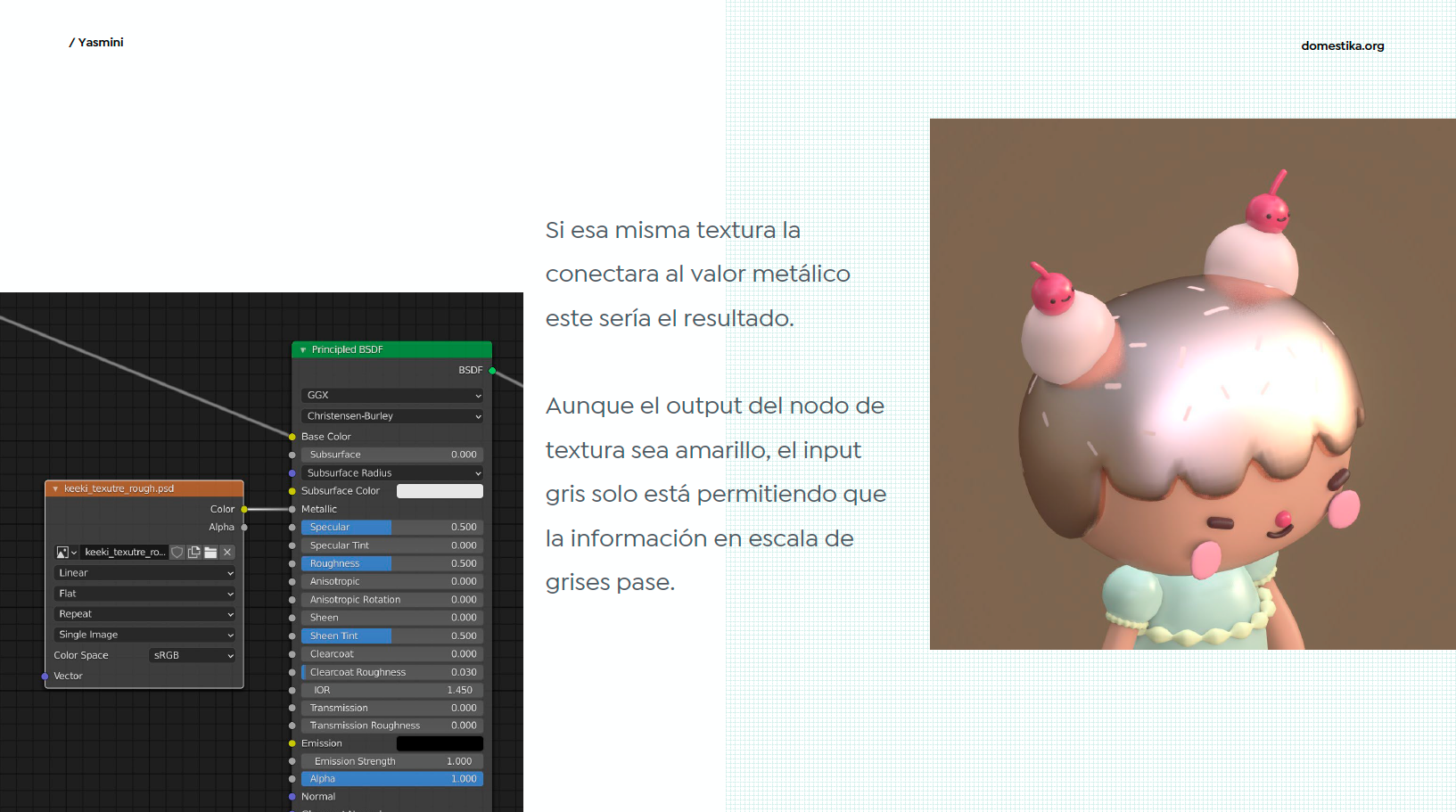 Yasmina Islas, más conocida en redes como Yasmini (@yasmini), es una animadora especializada en modelado 3D y diseño de personajes de estilo kawaii con Blender.