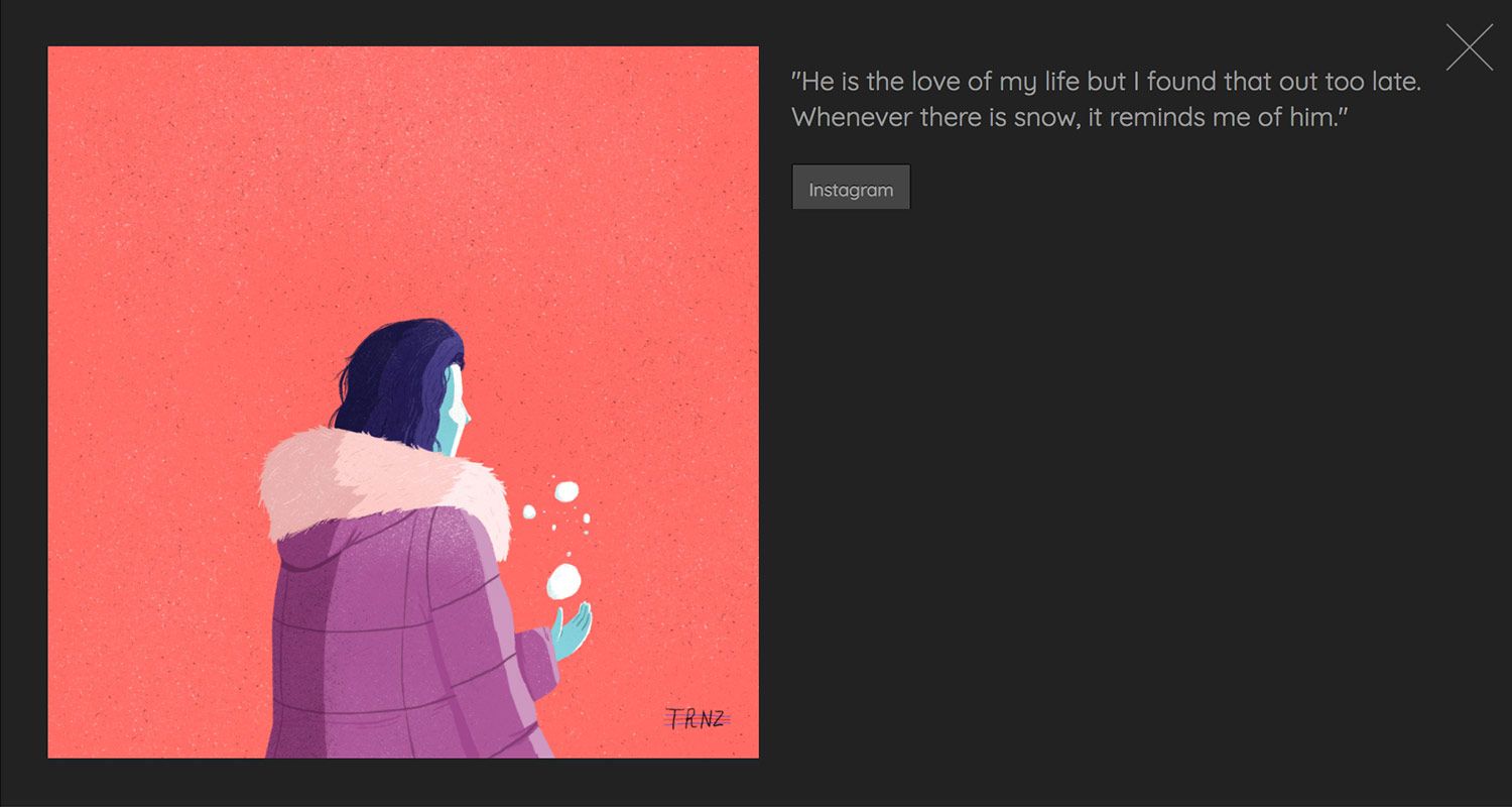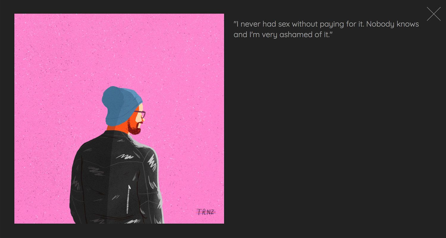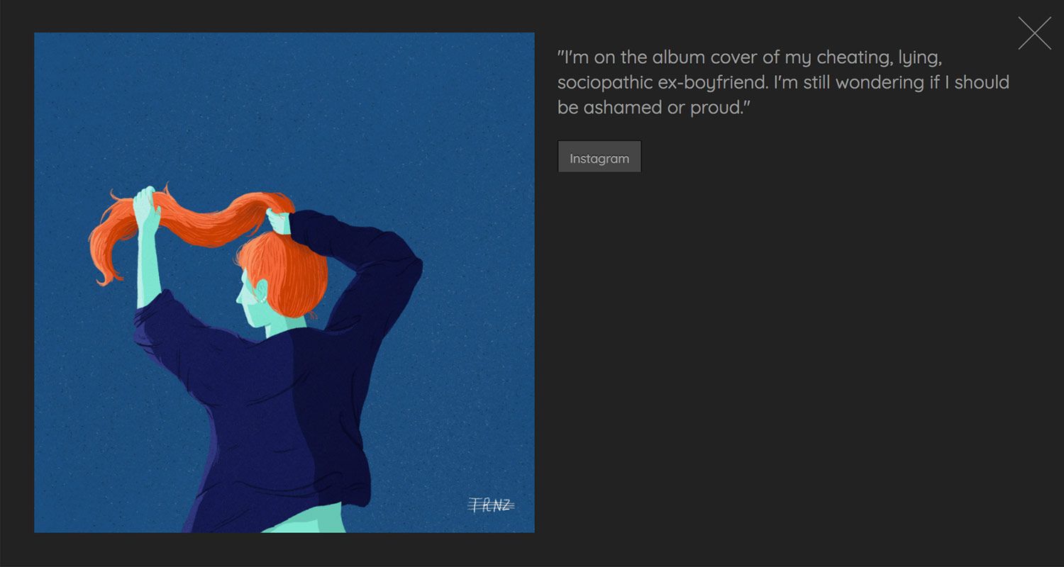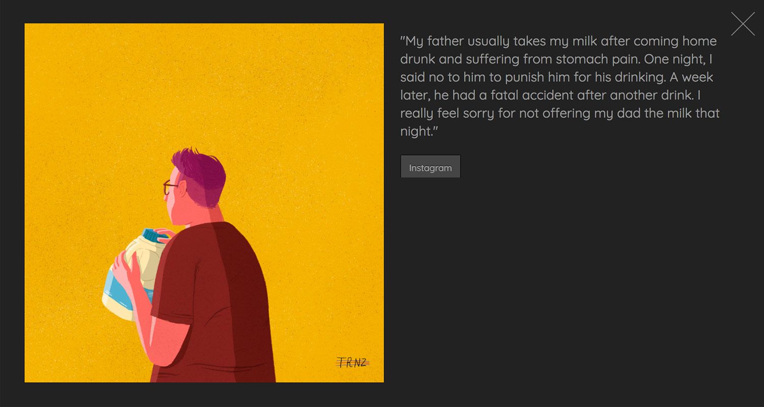Todas estas personas han compartido con el ilustrador desde temas casi anecdóticos como "mis padres piensan que he dejado de fumar" hasta secretos de gran envergadura, pero siempre en el terreno de lo personal, ayudándole a difundir sus pensamientos más ocultos y consiguiendo una ilustración a cambio.