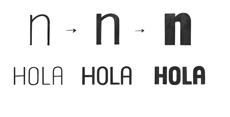 Si la proporción y la estructura eran el esqueleto de la palabra, el peso es el cuerpo. Hay tres tipos de pesos básicos que podemos considerar.