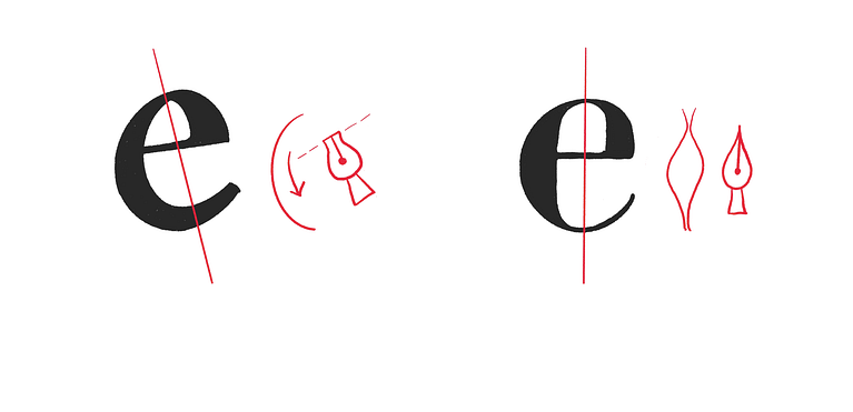 El ángulo diagonal se relaciona al tipo de punta chata o plana. El trazo de esta pluma nos da una forma similar a la que vemos en el primer dibujo, donde el fino de la letra se encuentra de una forma diagonal.