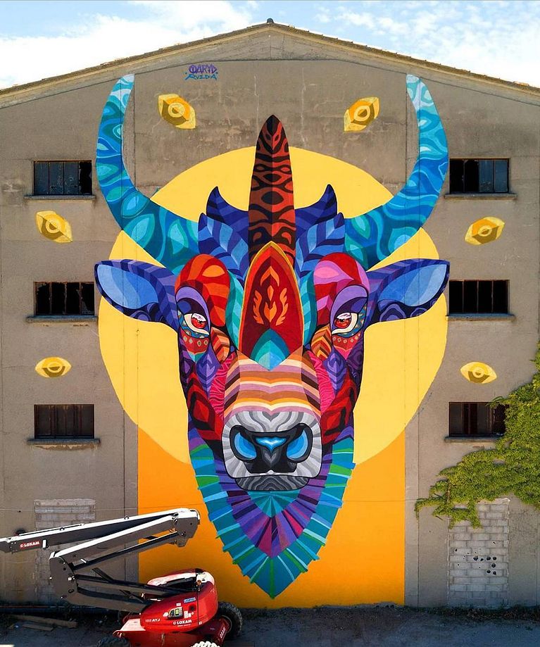 El mexicano Farid Rueda plasma la esencia de su tierra llenando los muros de infinitos colores. Alejándose de tópicos y clichés, retrata el folclore mexicano desde un punto de vista al mismo tiempo moderno y conservador con la cultura tradicional.