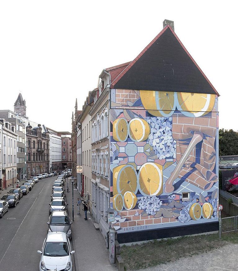 Aryz es otro de los exponentes del arte urbano en España. Su estilo, en el que predominan los colores apagados y el surrealismo, está claramente definido y ha llamado la atención de artistas y seguidores de medio planeta.