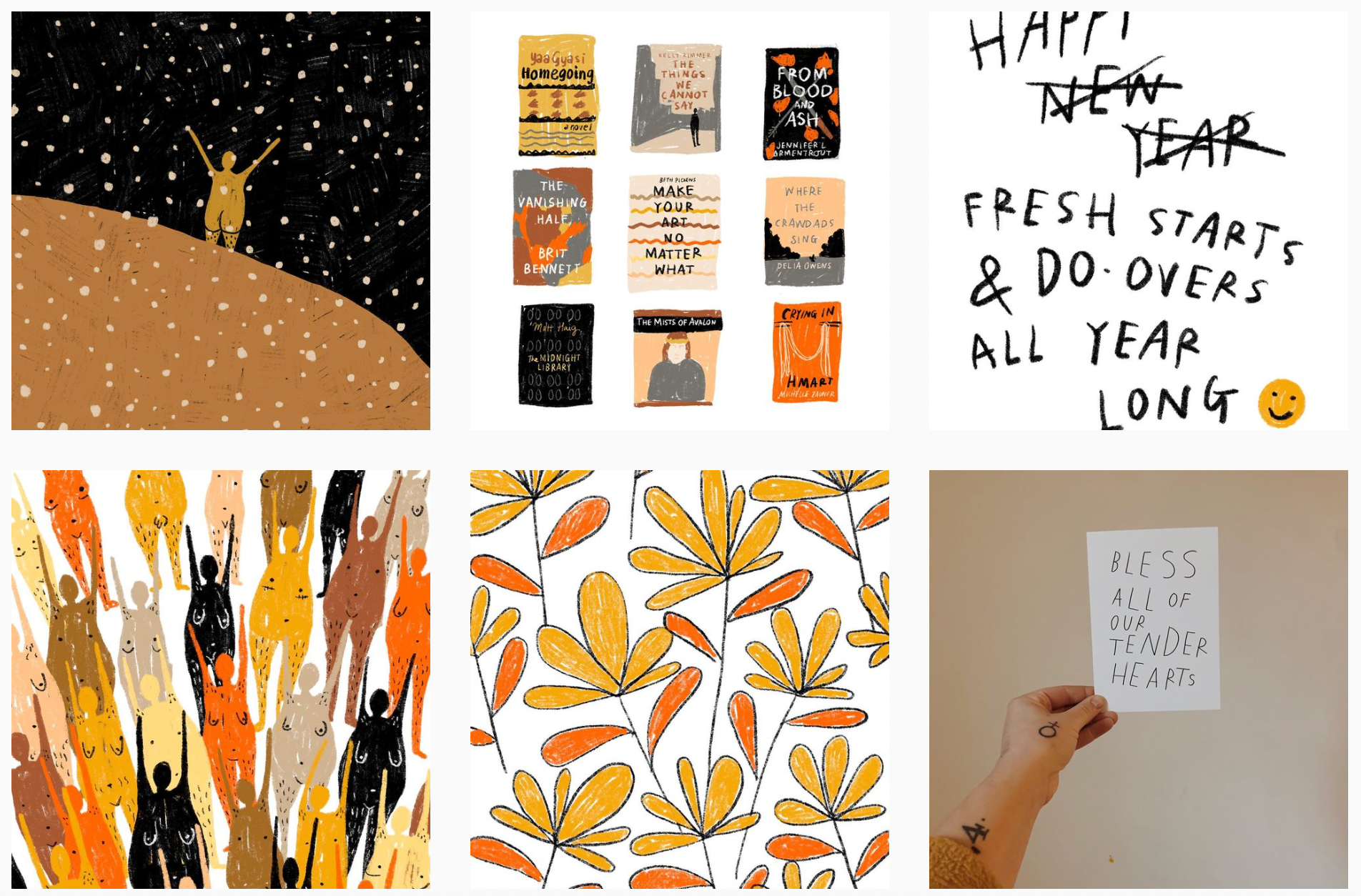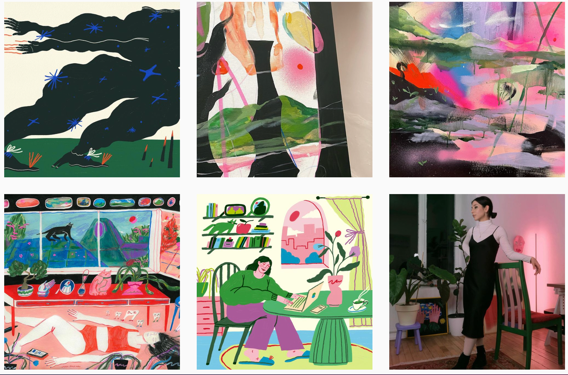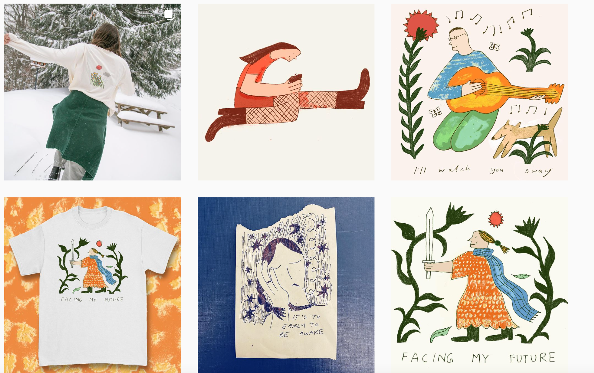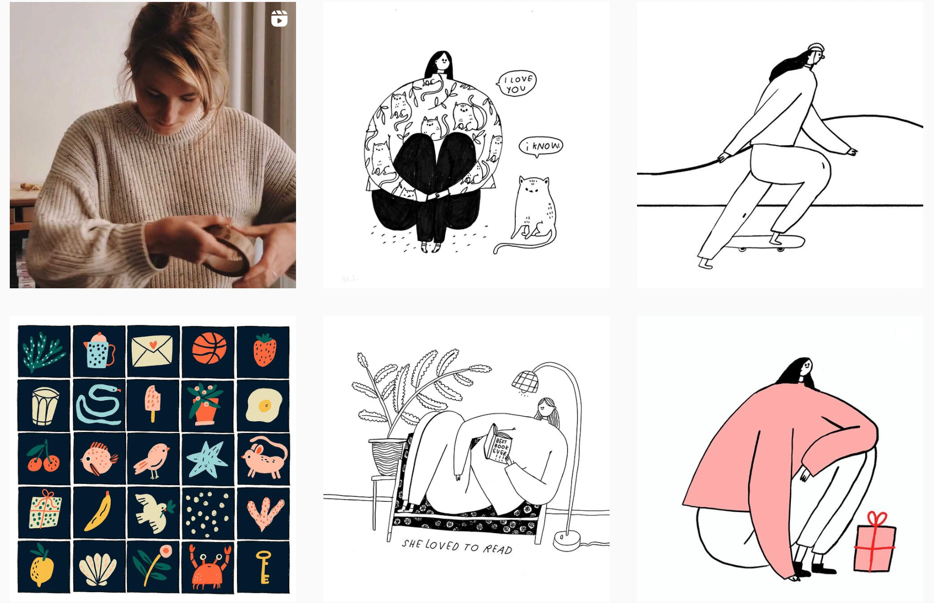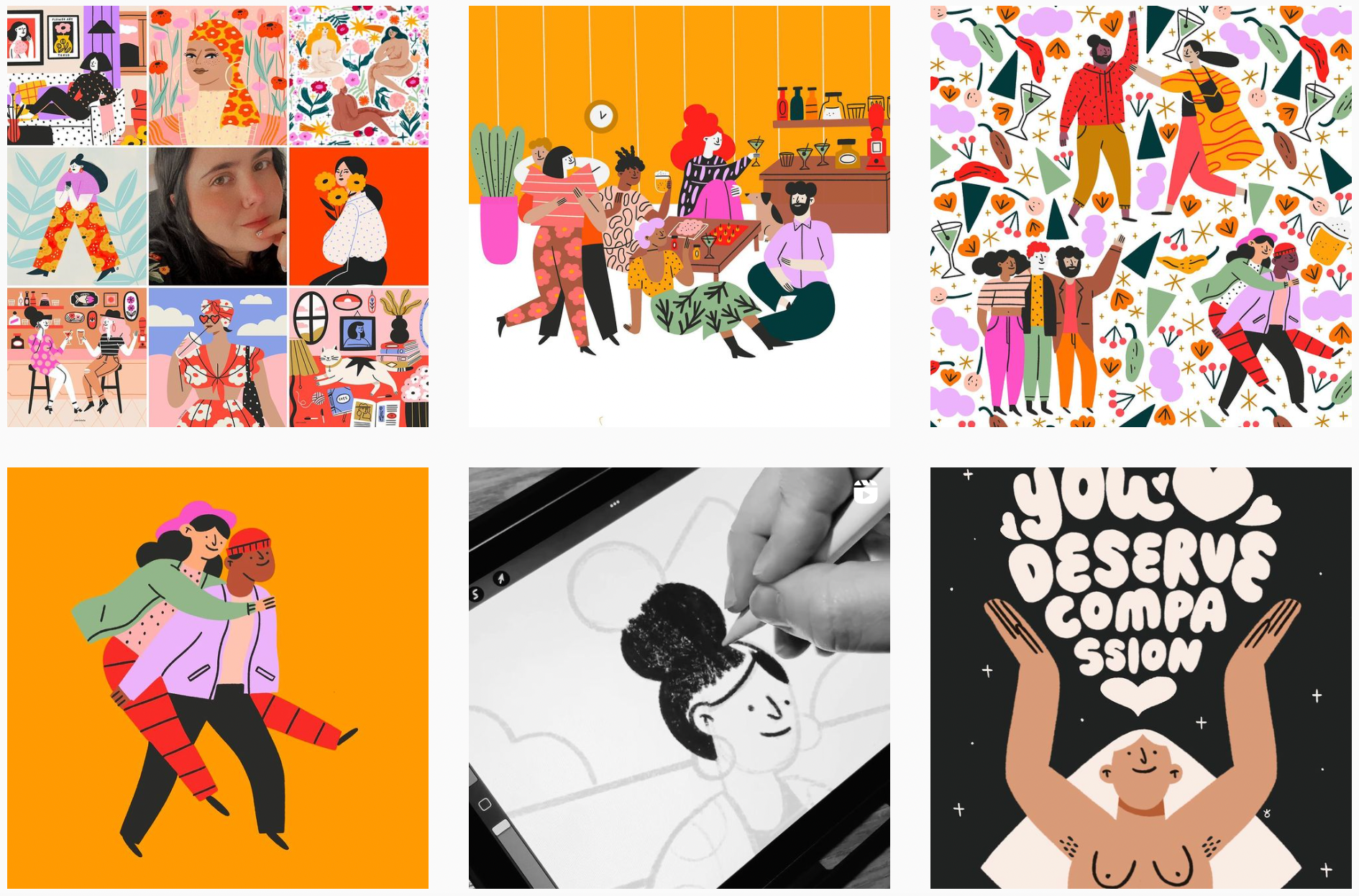 En su cuenta, Sara comparte proyectos de ilustración, colaboraciones con otras marcas y procesos de trabajo. Destaca que si bien no hay una estrategia específica para la publicación de contenidos, todo luce coherente al mantener una paleta de colores constante.