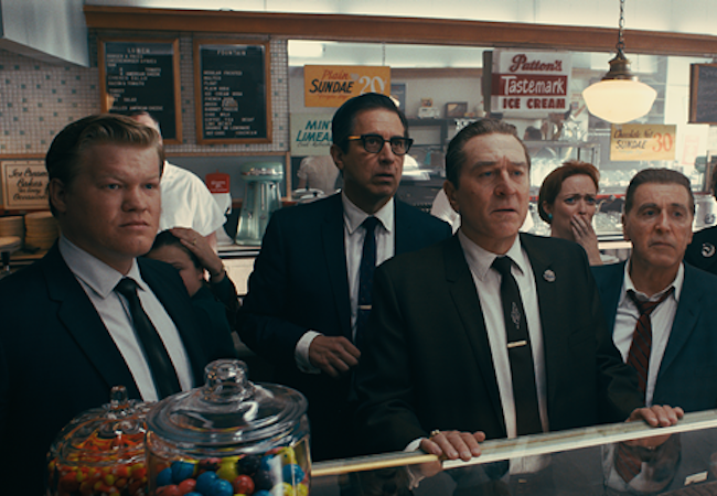 El irlandés es la última película del director de cine Martin Scorsese y fue rodada principalmente en 35 mm, excepto las escenas que requirieron efectos de rejuvenecimiento, que fueron rodadas en digital y utilizando tres cámaras.