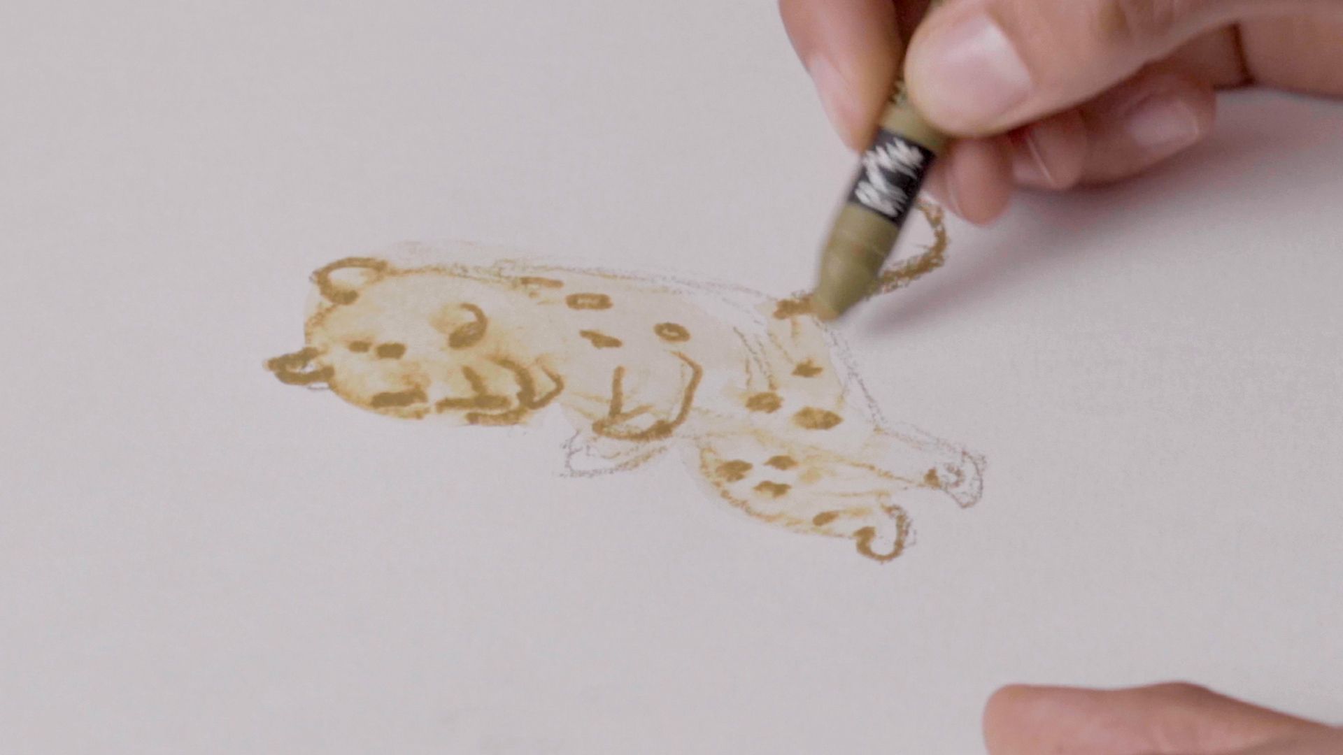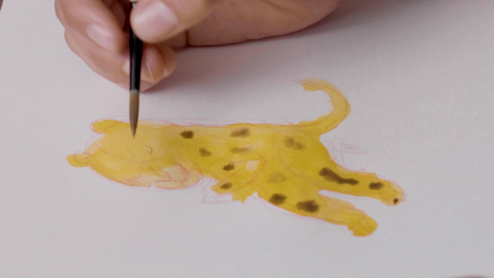 En este caso, al ser cinco minutos el tiempo del que dispone, Manu Montoya va a trabajar el color desde la mancha y utilizará acuarelas. La técnica de la mancha permite generar cosas totalmente diferentes a la línea pero tienes que tener en cuenta que, en acuarela, se tiene que trabajar de claros a oscuros. El uso de este material le dará un toque más etéreo al jaguar. Aprovecha el tiempo que te quede para añadir detalles adicionales. "Lo que me gusta de este proceso es que debo aceptar el error", explica la artista.
