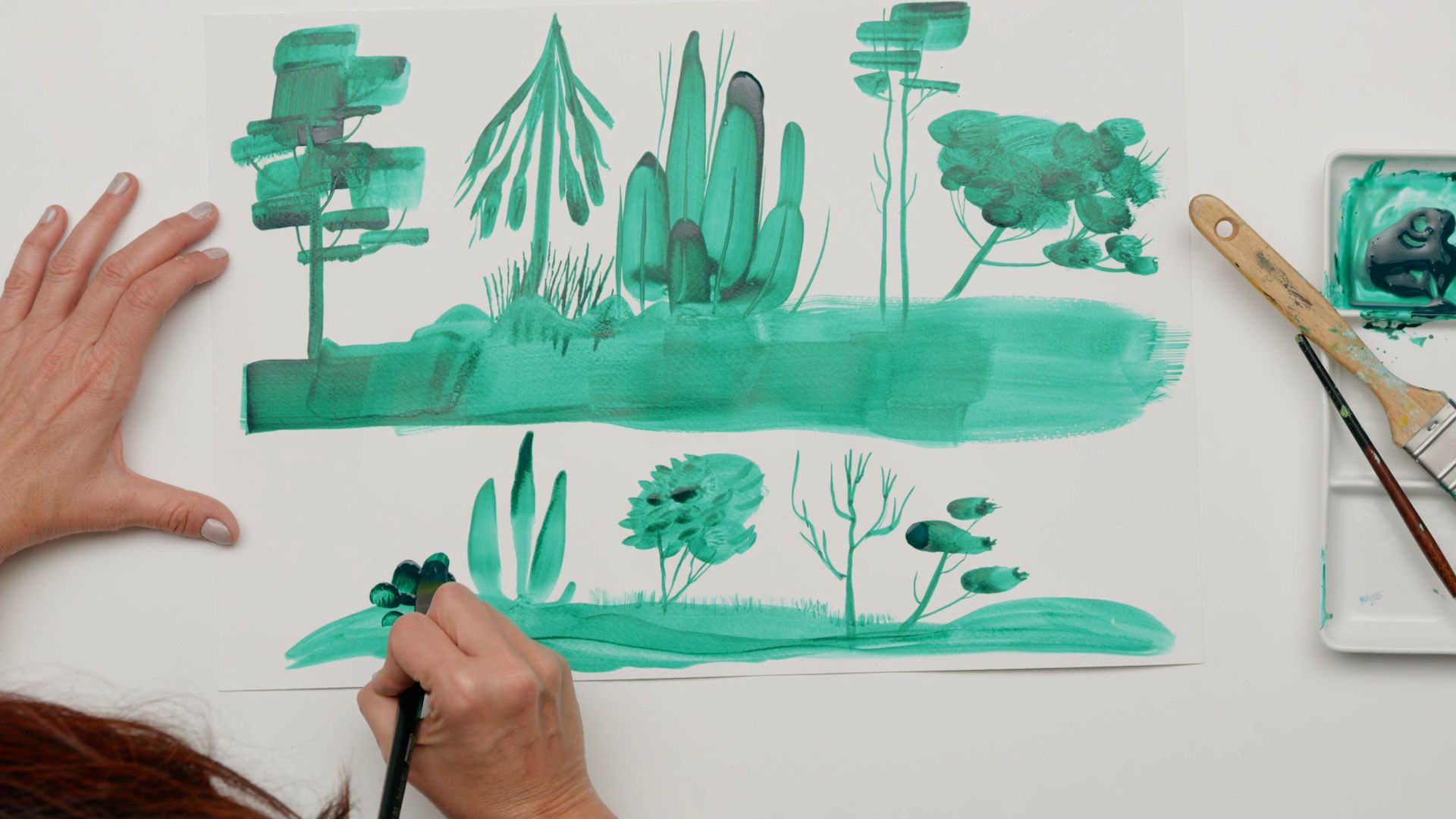 Comprueba en este vídeo cómo, usando un solo color y distintos pinceles, puedes crear una enorme variedad de ejemplares y texturas vegetales. ¡Que lo disfrutes!