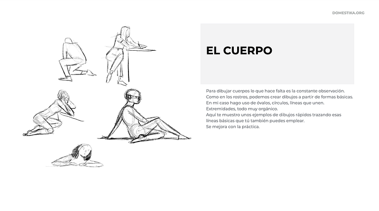 En la siguiente descarga encontrarás una guía con ejemplos y consejos de la ilustradora para dibujar el cuerpo humano a través de diferentes figuras y posiciones.