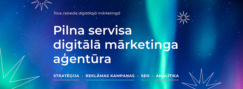 We knew that we didn't want to maintain the previous corporate style and decided to make the new brand more creative, distinct, and personalized, as is typical of high-quality agencies. To do this, we needed a solid idea to build upon. Fortunately, we had one already. The company's employees had worked under the mantra "We are your guide in digital marketing", which we used as a starting point for the new concept of "north-star in digital marketing." We used a beautiful image of the northern lights as inspiration for the color palette and created texts and symbols around the metaphor of a north star as a guide.