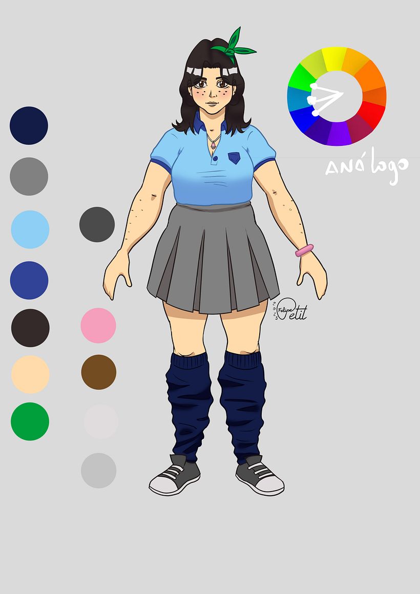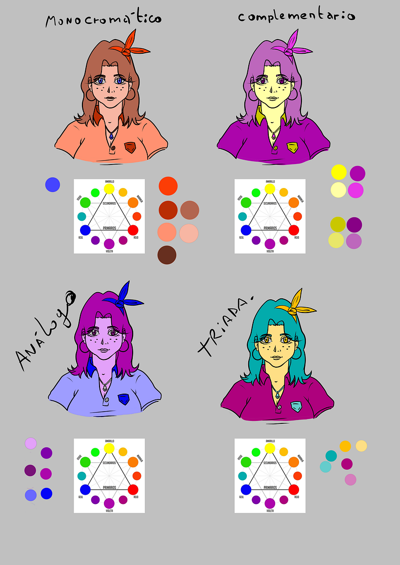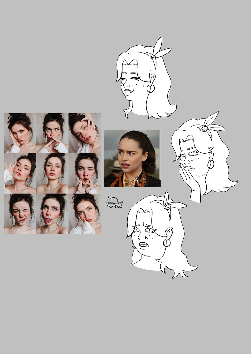 Realizamos estudios del personaje con diferentes rostros y paleta de colores.