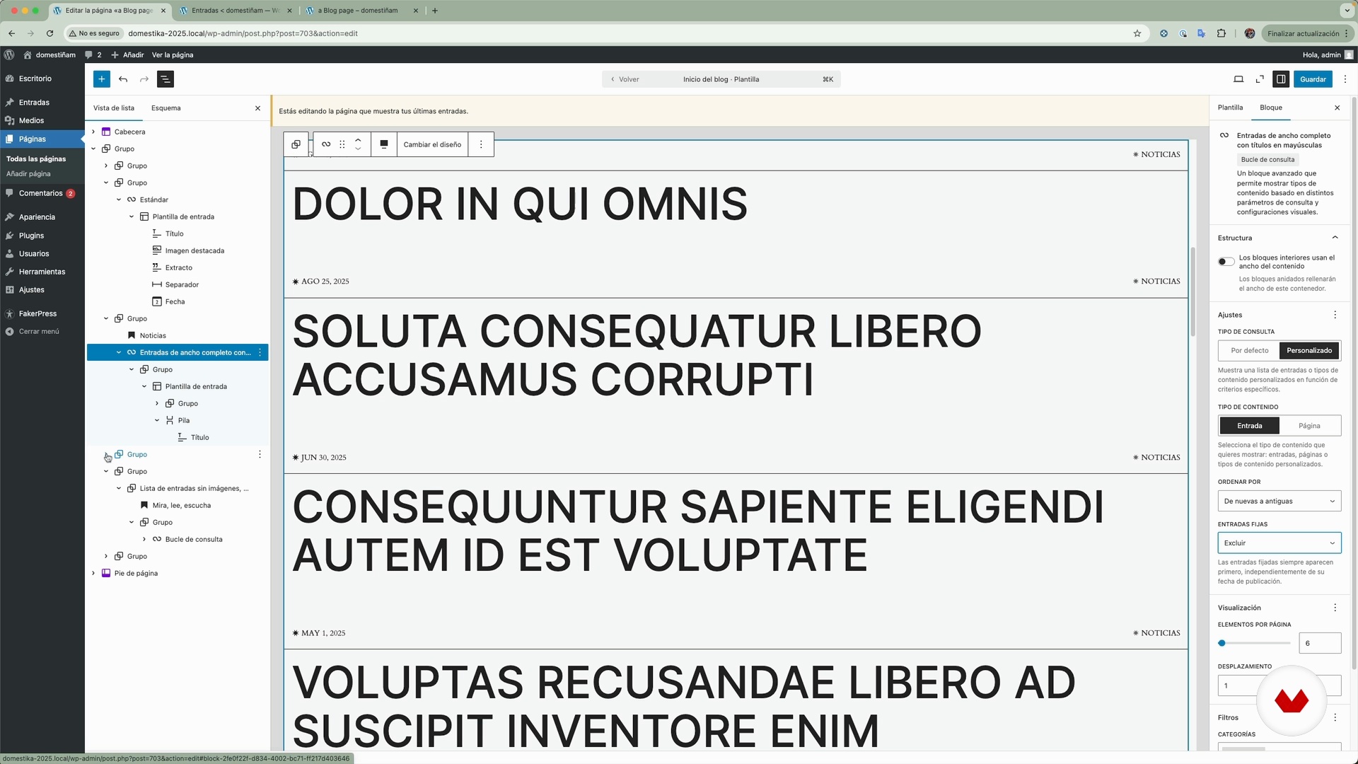 “En esta segunda parte seguimos profundizando en el uso del bloque de consulta, creando múltiples bucles personalizados para construir una estructura tipo “magazine” o revista digital. Aprenderás a filtrar entradas por categoría, aplicar desplazamientos para evitar duplicados, mostrar solo entradas fijas o excluirlas, y adaptar cada sección con diseños únicos. Además, exploramos el bloque de comentarios, su estructura interna y cómo reutilizar bloques predefinidos. Por último, se introduce Stackable, un plugin que añade patrones y bloques avanzados para acelerar y enriquecer visualmente el diseño de tu sitio.”