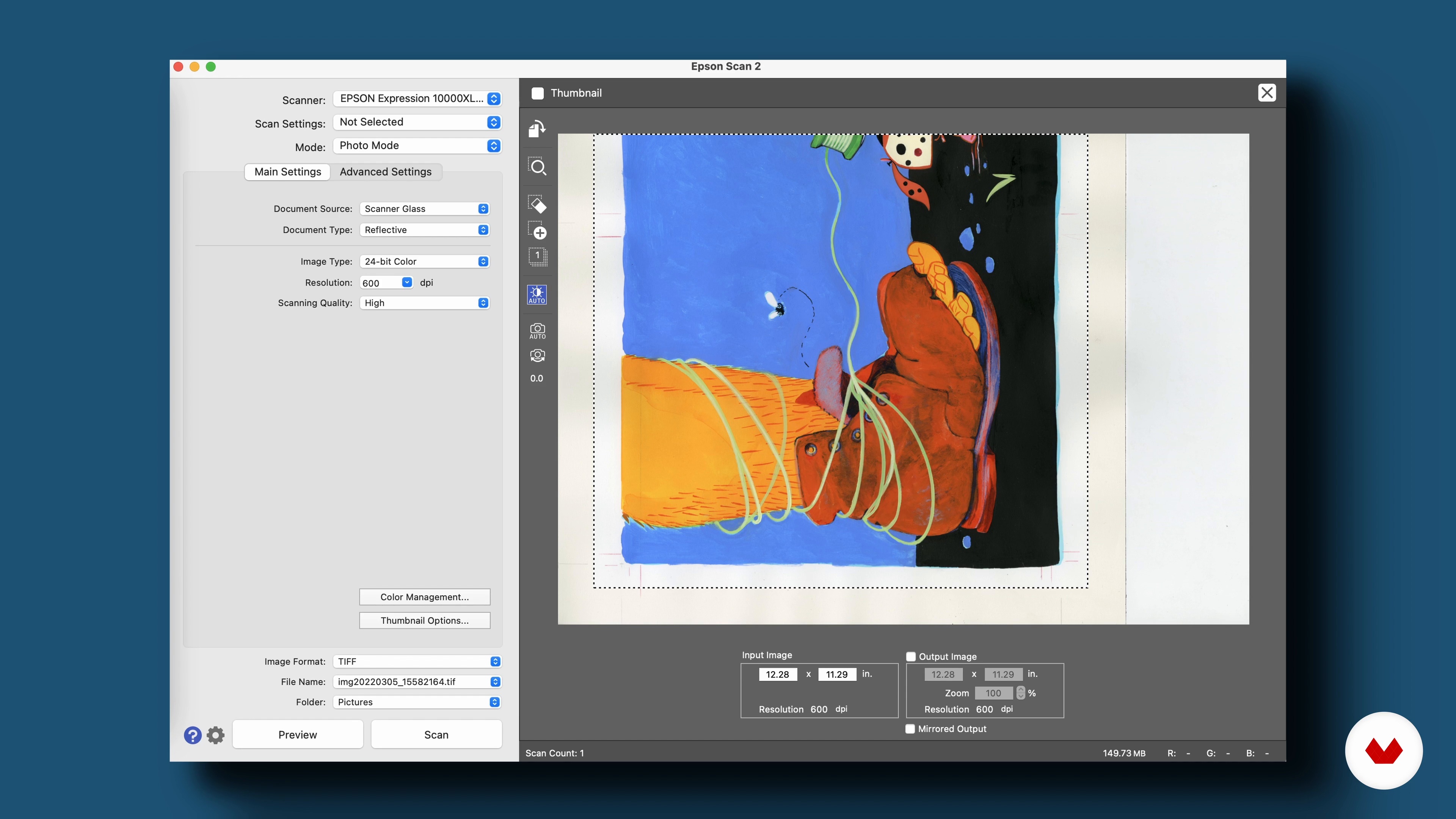 “La obra de arte que hice a mano está terminada, así que ahora estoy listo para escanearla y hacer los ajustes finales. Tener un escaneo de alta calidad de su obra de arte es esencial, ¡así que no se salte este paso! Aquí te mostraré cómo hago esto.”