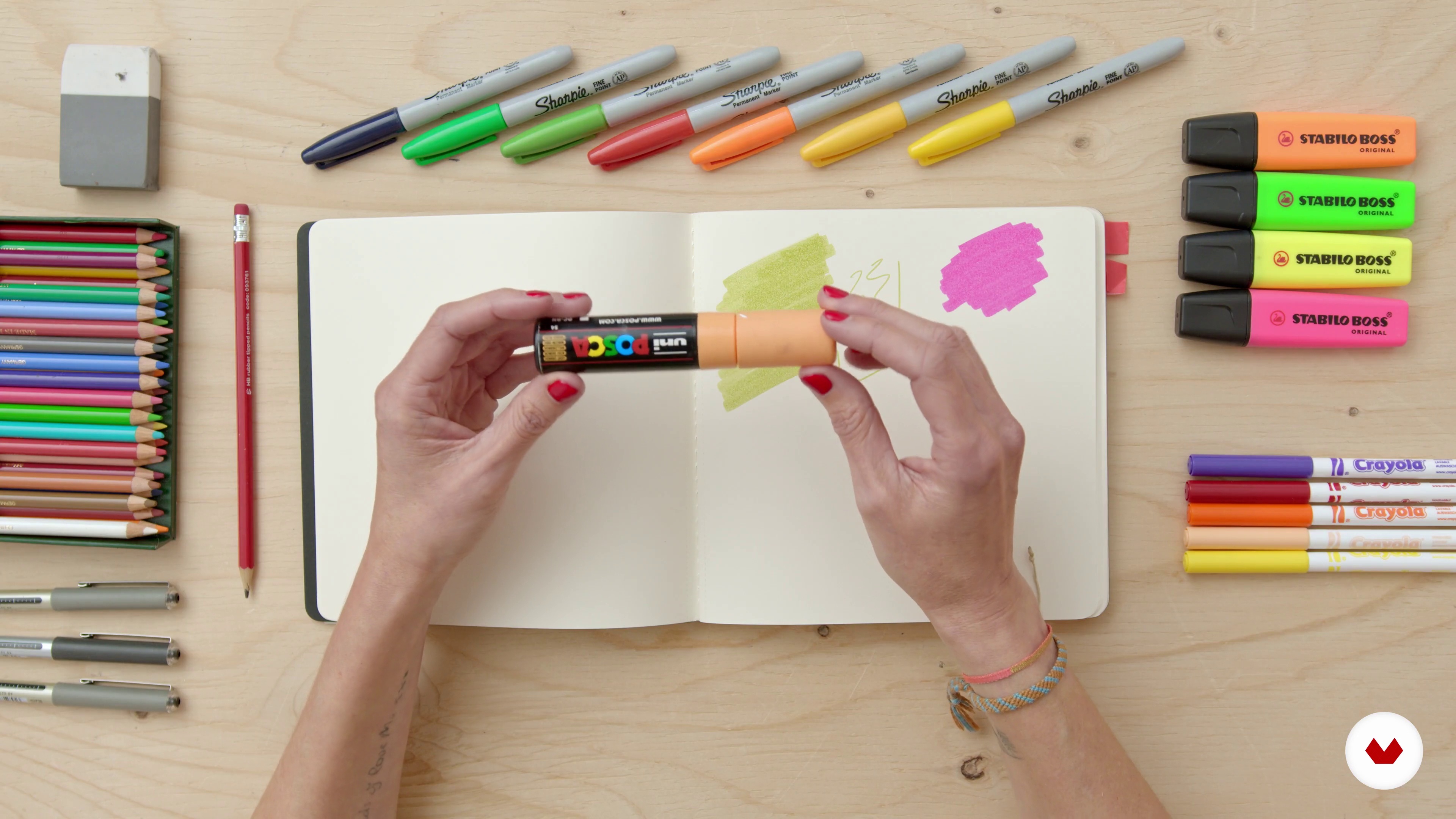 “Materiales En esta lección, compartiré con ustedes mis materiales favoritos para usar y también te daré muchas opciones alternativas. Como este curso se basa en un cuaderno de bocetos, comenzaremos discutiendo qué cuaderno de bocetos elegir. Mi cuaderno de bocetos favorito en particular es uno de Moleskine. Realmente amo este formato cuadrado. Tiene una cubierta suave y realmente hermosa, para que puedas meterlo en tu bolso y no se dañe. Es solo un cuaderno de bocetos de tamaño mediano realmente agradable, porque no quieres nada demasiado grande o voluminoso para llevar contigo. Es simpleme...”