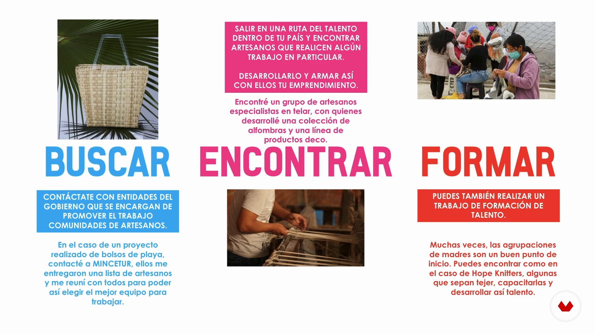 “Talento: Identificando productores locales Una palabra clave a la hora de identificar productores locales es encontrar talento, talento que puede existir en cualquier parte del país en el cual te encuentres, talento que puede existir desde una cuadra cerca de tu casa hasta 10, 20, 30 km. o de repente en otra provincia. El objetivo de desarrollar un emprendimiento social en moda es encontrar talento, potenciarlo, desarrollarlo y así crear un producto que nos va a permitir poder impactar positivamente en una comunidad. A continuación, vamos a hablar acerca de cómo identificar productores loca...”