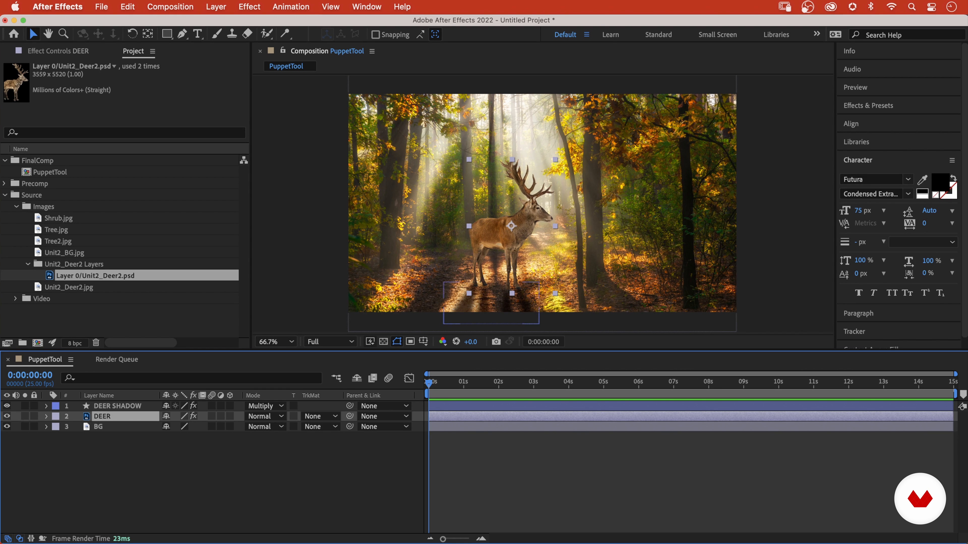 En esta videolección, James Daher aborda el tema: Herramienta Puppet y puntos de anclaje 1, que forma parte del curso online de Domestika: Motion graphics con After Effects: crea cinemagraphs alucinantes. Aprende a animar imágenes con las herramientas digitales de Adobe After Effects y diseña una experiencia inmersiva para los espectadores.