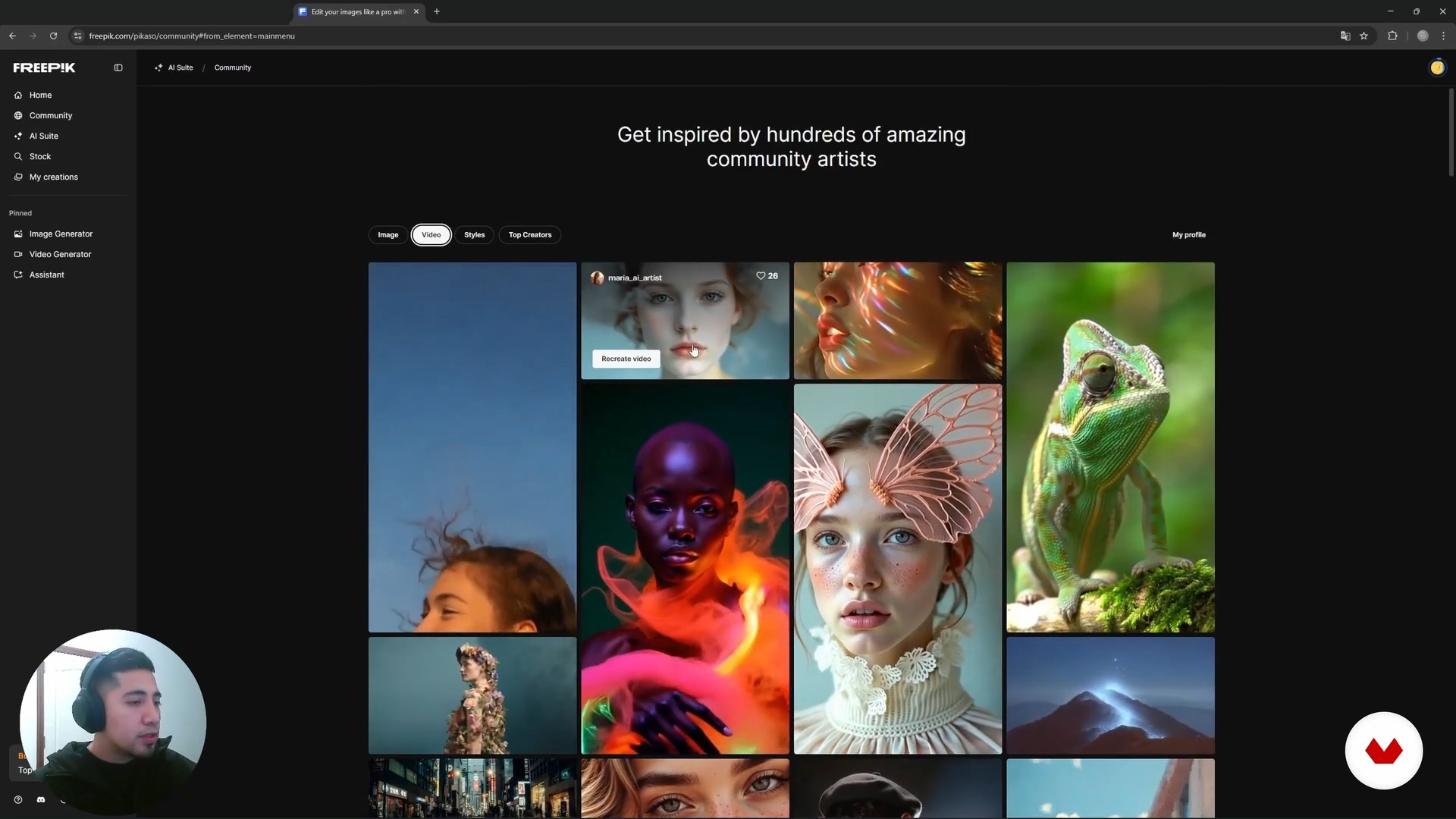 “Muy bien, bienvenidos a esta primera parte del curso. En esta primera parte veremos cómo usar la guía de Freepik Trabajaremos en la generación de imágenes y les daré una estructura de PROM muy básica como para que empiecen a generar sus propias imágenes. Esto es el interfaz de inicio de Freepik. Si es la primera vez que entran. va a encontrar que acá tenemos algunos accesos rápidos como para ver la opción de generar imágenes, generar video, encontrar stock, que es el clásico stock que ya teníamos dentro de la plataforma. Tiene muchas otras herramientas como crear voiceover, puedes ahora cha...”