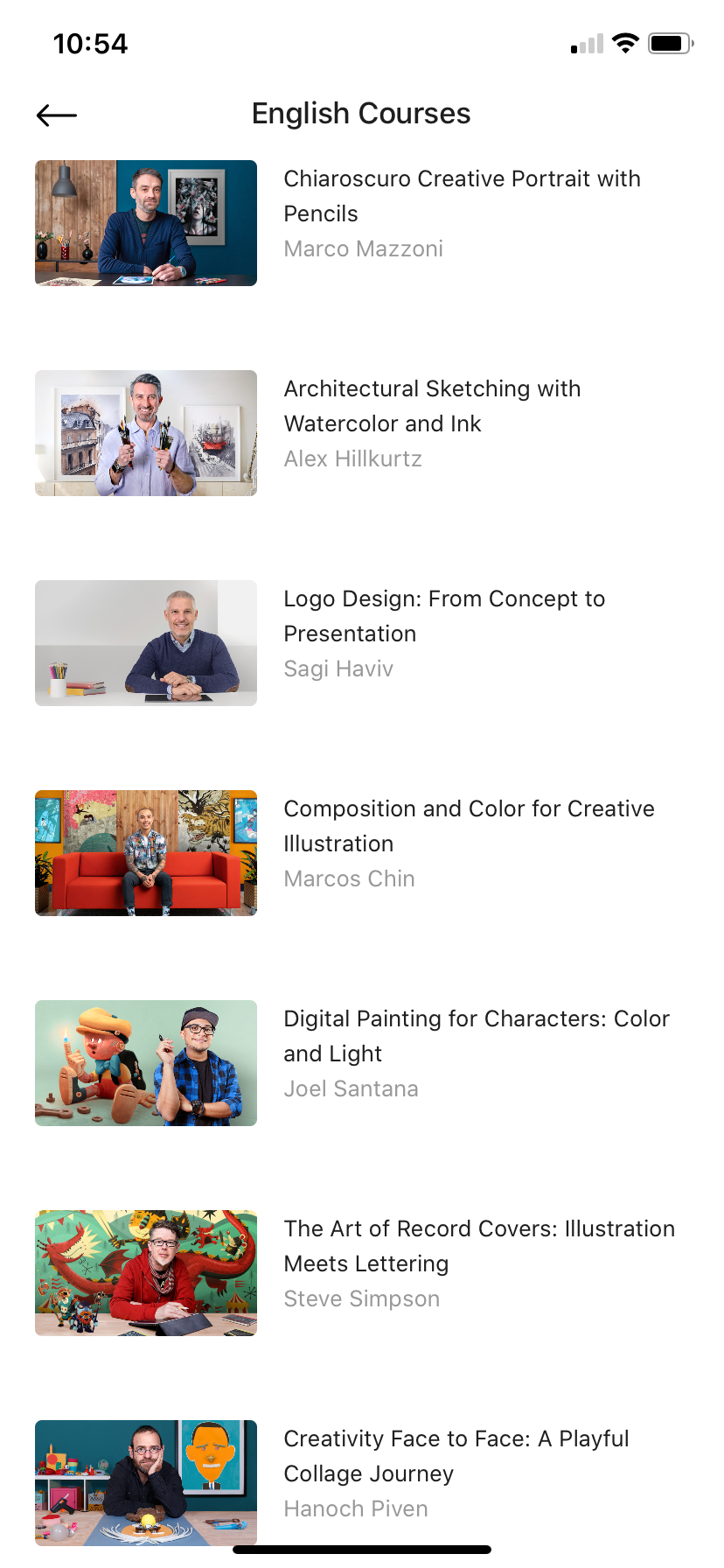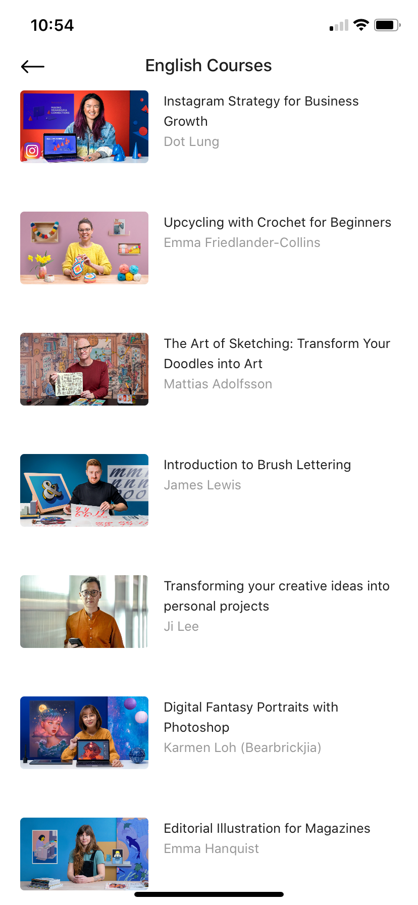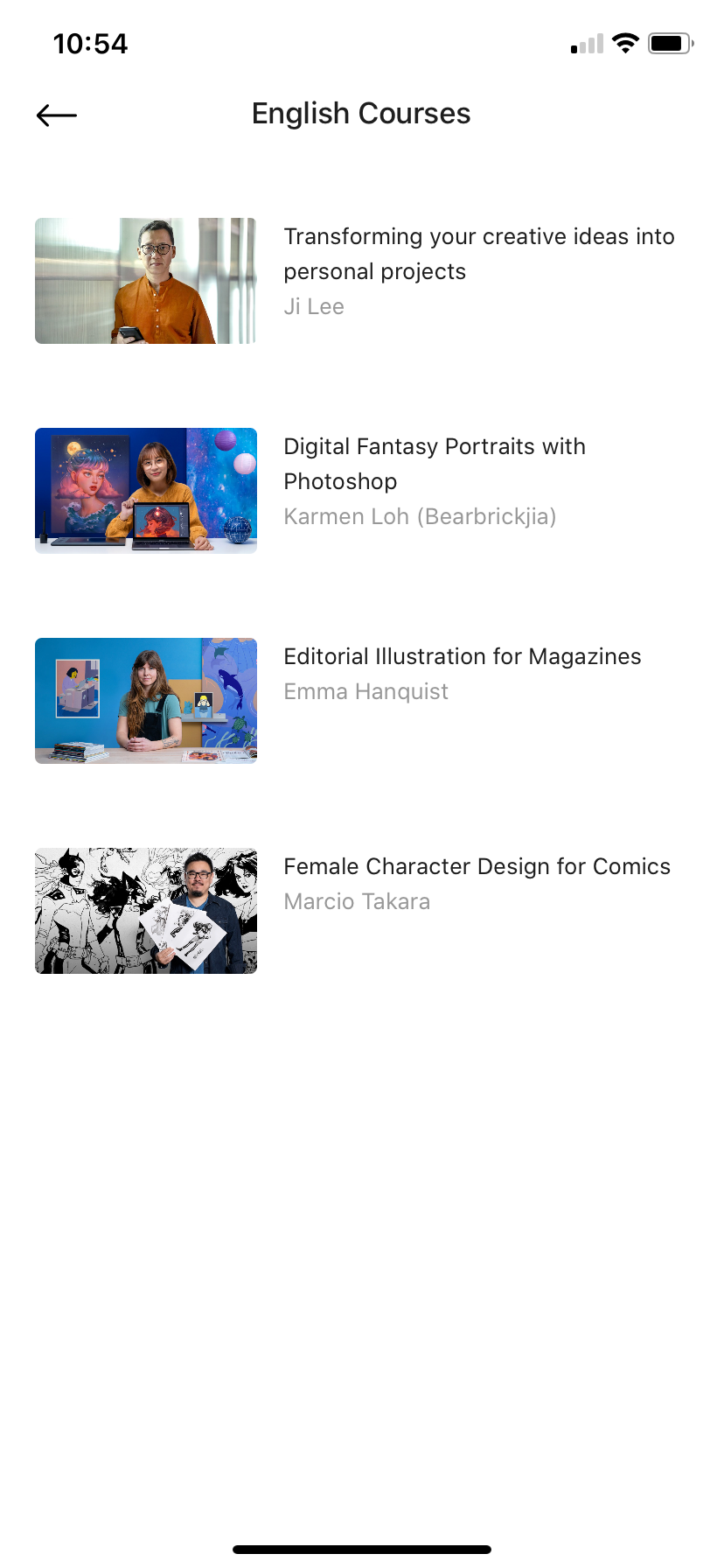 El app móvil me da una lista de cursos en inglés, aún no he encontrado lo mismo en la página web.