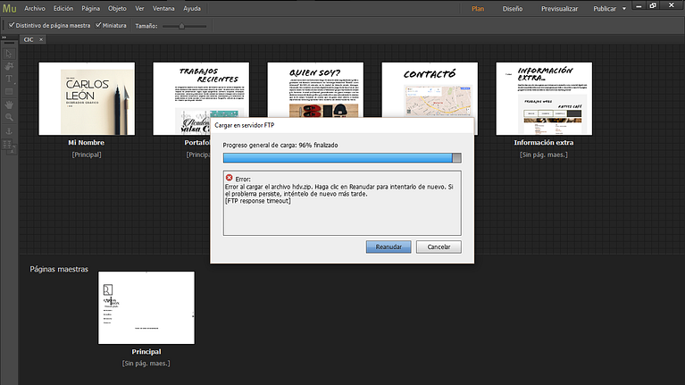 he trabajando con muse desde hace un tiempo pero por cosas de la vida no me había dedicado tiempo a construir mi web-portfolio, una vez creada mi página y a la hora de cargar los archivos directamente desde muse, sale una ventana que dice cargar sitio FTP y cuando llega al un archivo PDF que tengo, me dice que hay un error pero no me especifica ni cual es y ni da ayuda para resolverlo y las opciones que te dice son (reintentar) y (cancelar) ósea, luego verificando el hipervinculo, me di cuenta que cuando pre-visualizamos cómo se vería la página en nuestra web, y le damos click donde esta el PDF para descargarlo y no hace absolutamente nada, donde hay otros vínculos con otras direcciones y si nos las agarra. por ejemplo las direcciones de (instagram) o de (Facebook).. es como si no respondiera y ya he visto muchos videos tratando de ver y nada, he hecho de todo sale lo mismo... necesito saber si me pueden ayudar y decirme porque a la hora de visualizar no direcciona la dirección y no sale nada!