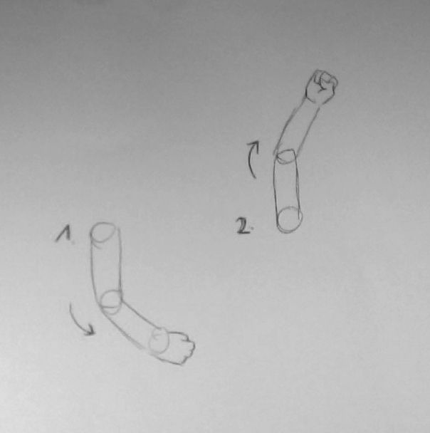¡Hola Rada! O sea que lo que tendría que hacer es dibujarle a mi personaje un triple set de brazos tal que así (foto 1) e ir remplazándolos en las distintas posiciones según avanza el movimiento, no? posición 1: brazos abajo, posición 2: puños al frente, posición 3: brazos arriba