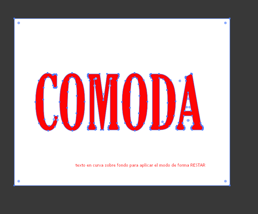 Tengo una fuente que convertí en curva (forma, dibujo etc) y al momento de tratar de crear el modo de forma " RESTAR" para quedar una especie de hueco sobre el fondo, he tenido dificultad.