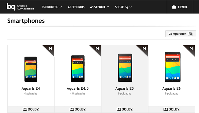 Y la actual la podéis ver aquí (http://www.bq.com/es/). Aquí sí creo que le hacía falta un rediseño, aunque era bastante intuitiva y bastante clara, pero no en el sentido en el que se lo han dado. Para mí le han quitado toda la personalidad que tenía a la marca, la web actual puede ser de BQ como de cualquier otra cosa.