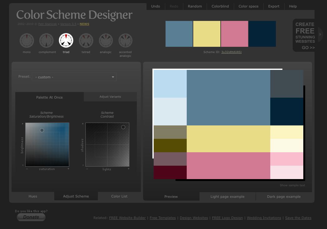 El brillo, la saturación y el contraste pueden modificarse y podemos ver cómo quedaría la paleta aplicada en una página de tonos oscuros o claros. Yo la utilizo bastante, ya me diréis qué os parece y si conocéis alguna que sea similar.