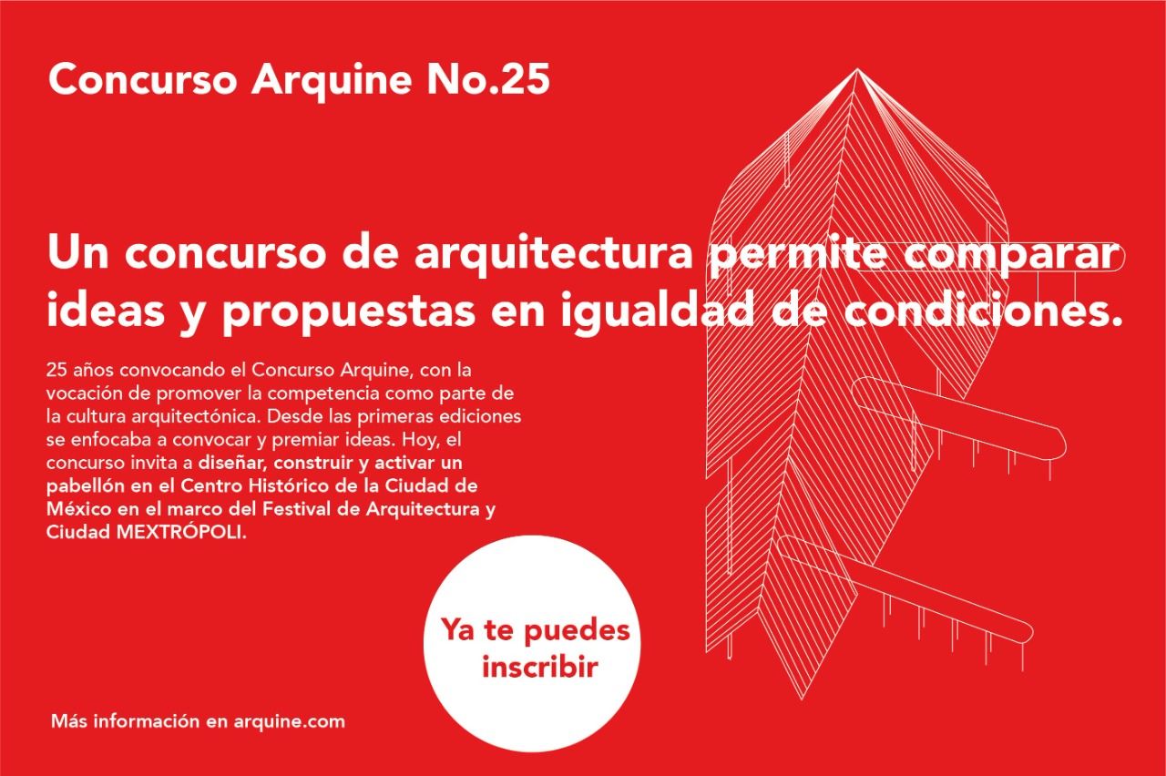 Arquine cumple 25 años convocando el Concurso con la vocación de promover la competencia como parte de la cultura arquitectónica. Desde las primeras ediciones, se convocaban y premiaban ideas. Hoy, el concurso invita a diseñar, construir y activar un pabellón en el Centro Histórico de la Ciudad de México en el marco del Festival de Arquitectura y Ciudad MEXTRÓPOLI; un pabellón que, inserto en la ciudad de manera temporal, logre generar, a partir de su propio discurso, una propuesta innovadora y sostenible; que permita el desarrollo de un programa público abierto y que construya un lugar para la interacción entre arquitectura y ciudadanía.