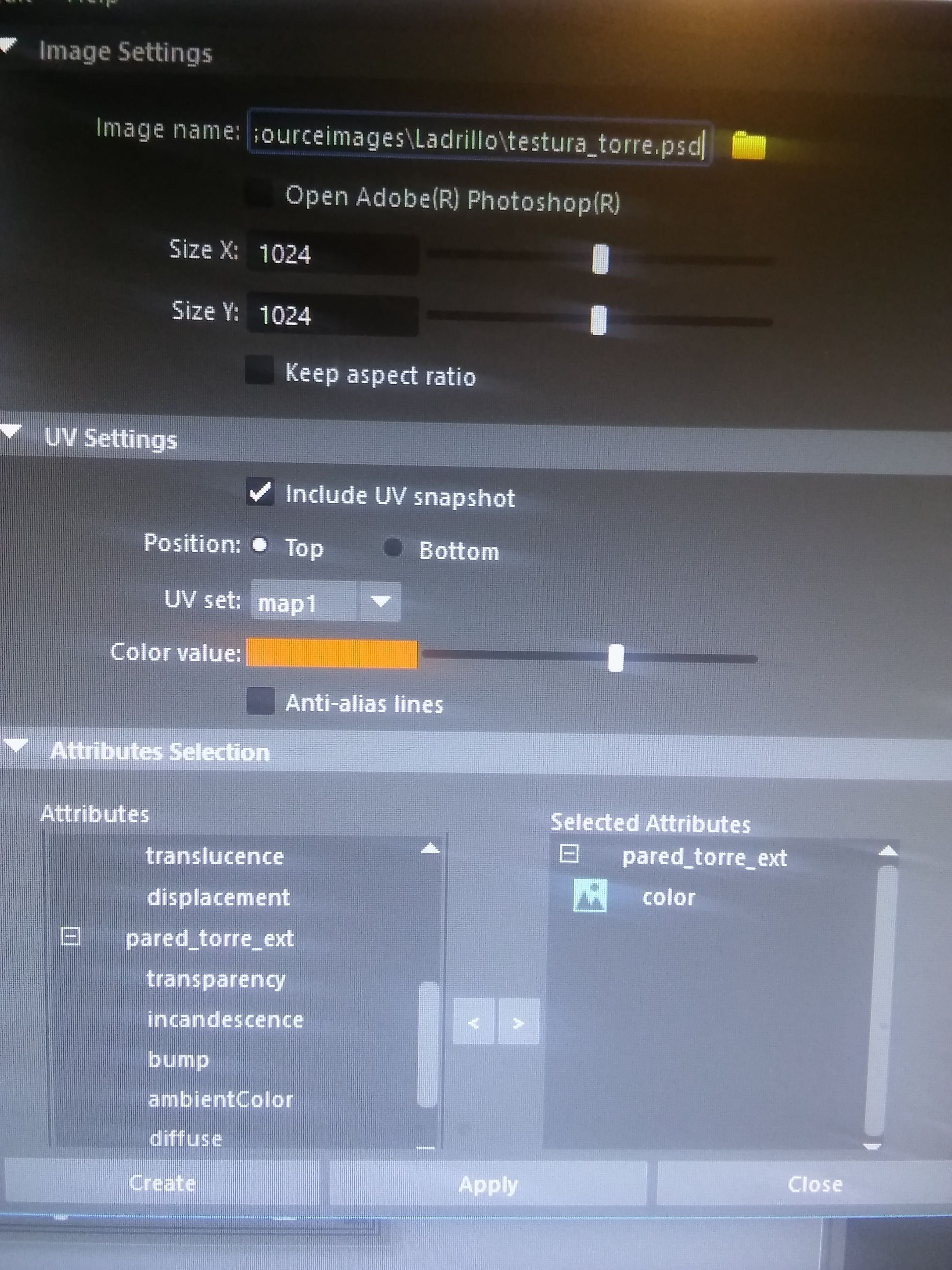 Buenos días a todos. Estoy avanzando con maya pero hay algo a lo que no encontre respuesta. Hice un modelo al cual le aplique una textura uv maping de ladrillos. Espero que se entienda, pues mi terminología por ahí no es lla adecuada. Esta textura está repetida varias veces, como un patro y conseguí hacerlo desde el autodesk maya. Ahora bien, lo que quiero hacer es editar ésta textura en photoshop. Pero no consigo exportarla tal cual la veo en el uv editor y en el mismo objeto. Usé uv snaptchat pero lo que se guarda es la imagen de los uvs pero no así la textura. Hay forma de guardar en capas los uvs y la textura para luego hacerle algunos retoques en photoshp? Espero puedan ayudarme. Gracias.