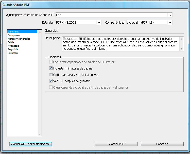 Exactamente, si eliges PDF X/3 la compatibilidad es con Acrobat 4, y ese es precisamente el mayor problema. Dado que actualmente no creo que nadie una version anterior a 8, si eliges compatibilidad con version 8 o posterior ya sería suficiene, pero si eliges PDF X/4 en lugar de X/3 ya queda resuelto.