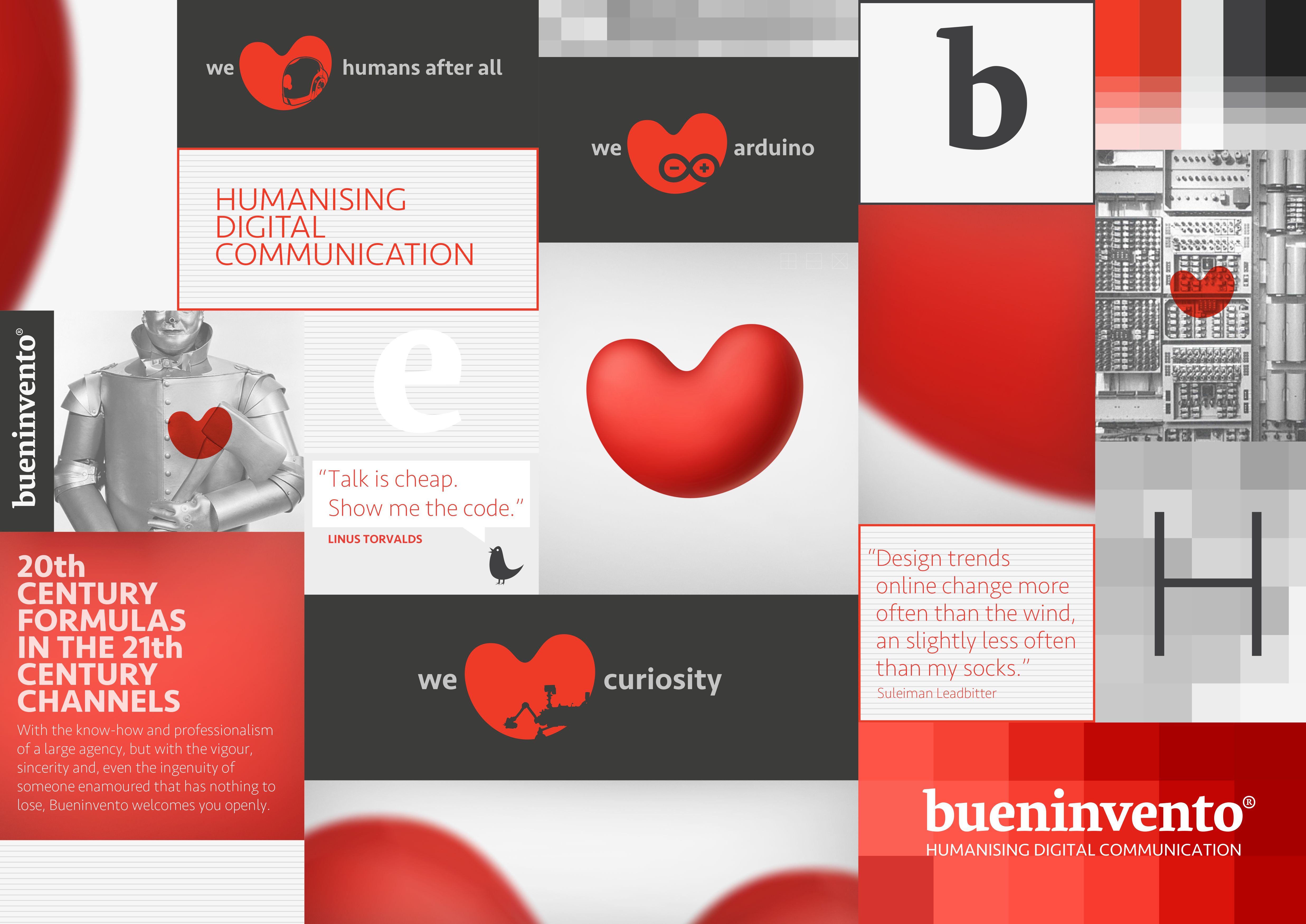Con el saber hacer y la profesionalidad de una gran agencia pero con el descaro, la sinceridad e incluso la ingenuidad de un enamorado que no tiene nada que perder, Bueninvento os saluda.