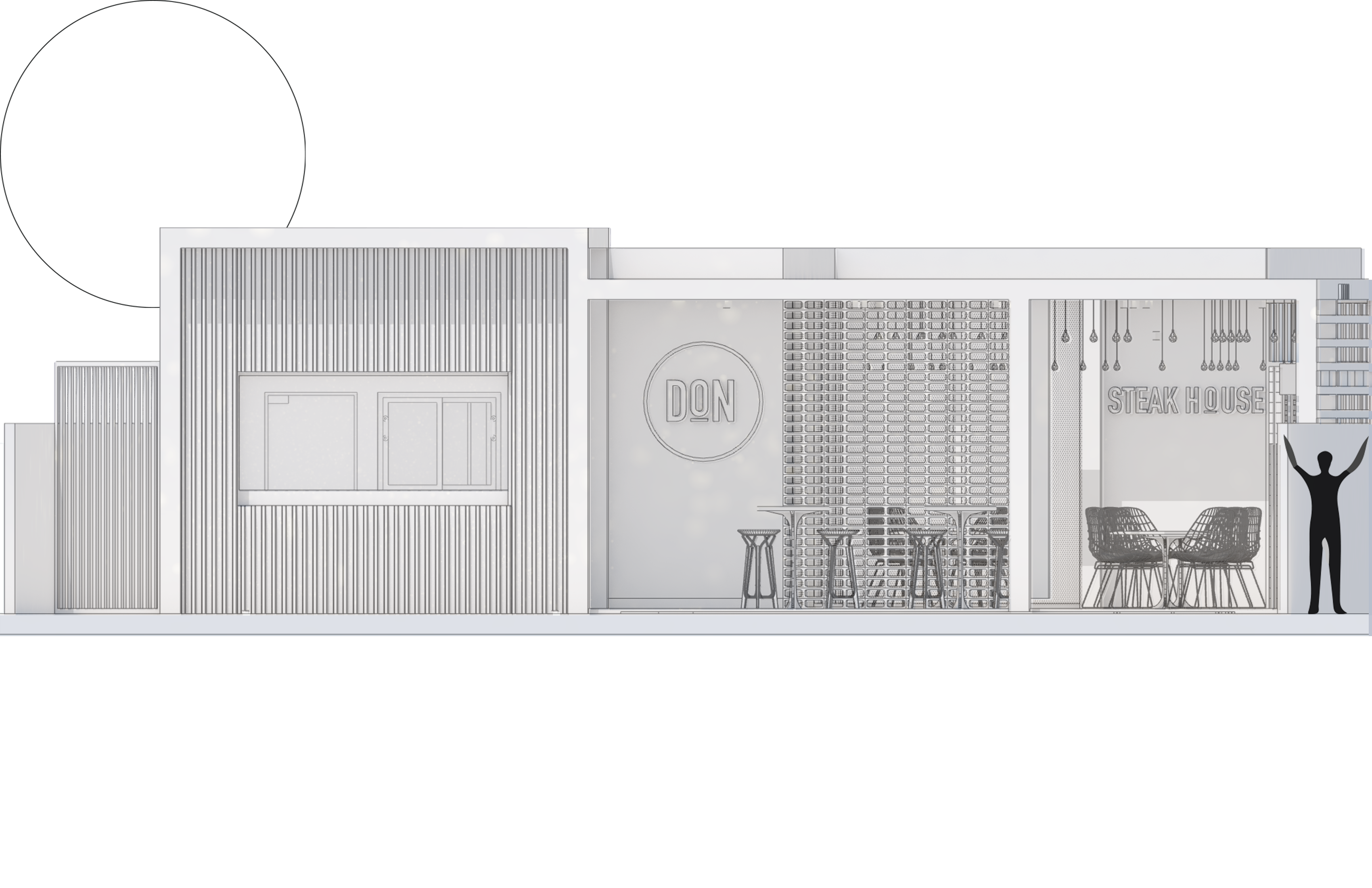 Consiste en la concepción del interiorismo comercial para el desarrollo de la marca Don, restaurante enfocado a la carne a la parrilla.
