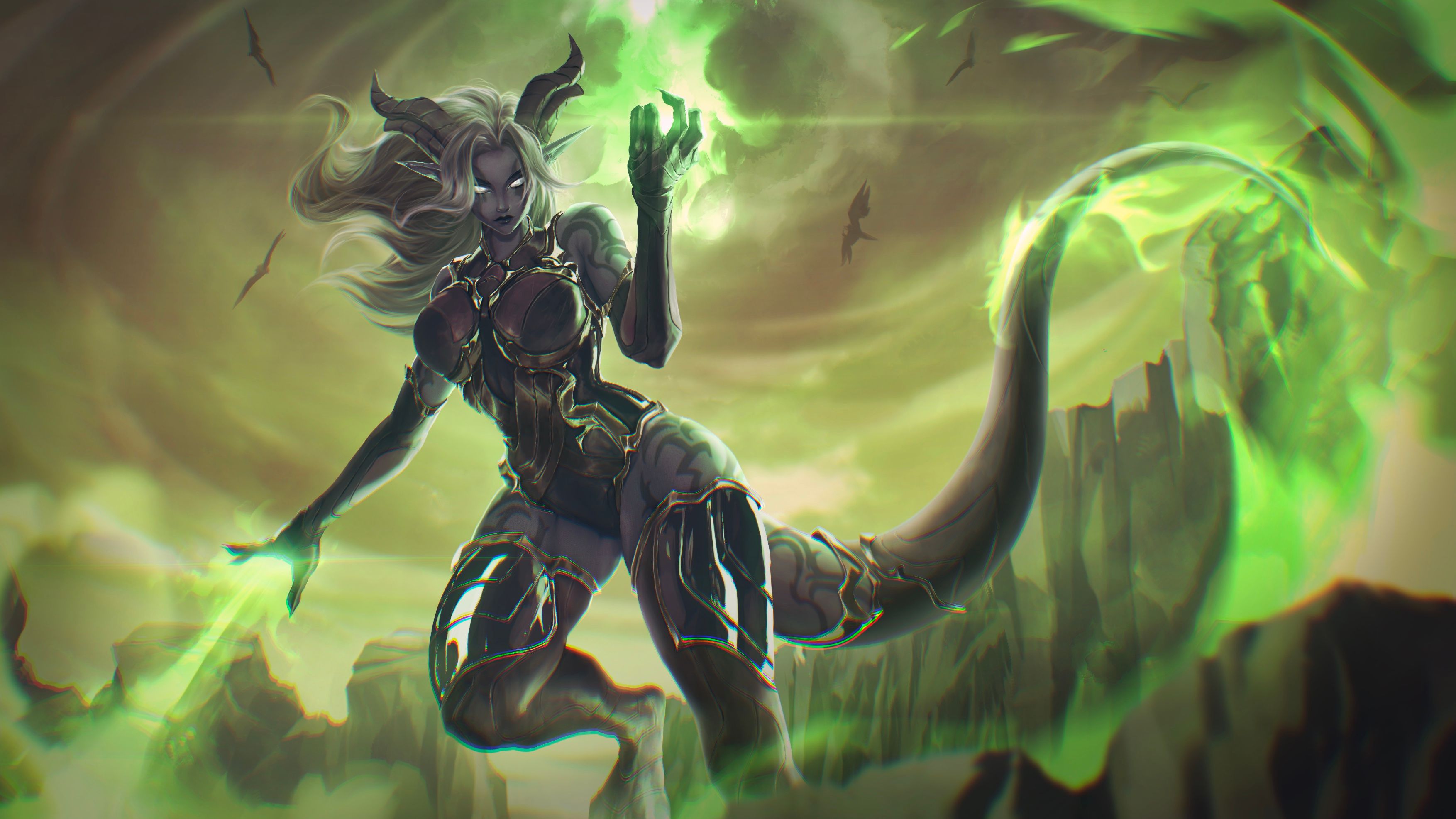 Una ilustración que representa a un draenei de Warcraft corrompida. En la pieza se cuido que el personaje y su silueta contrasten con el resto de la imágen.
