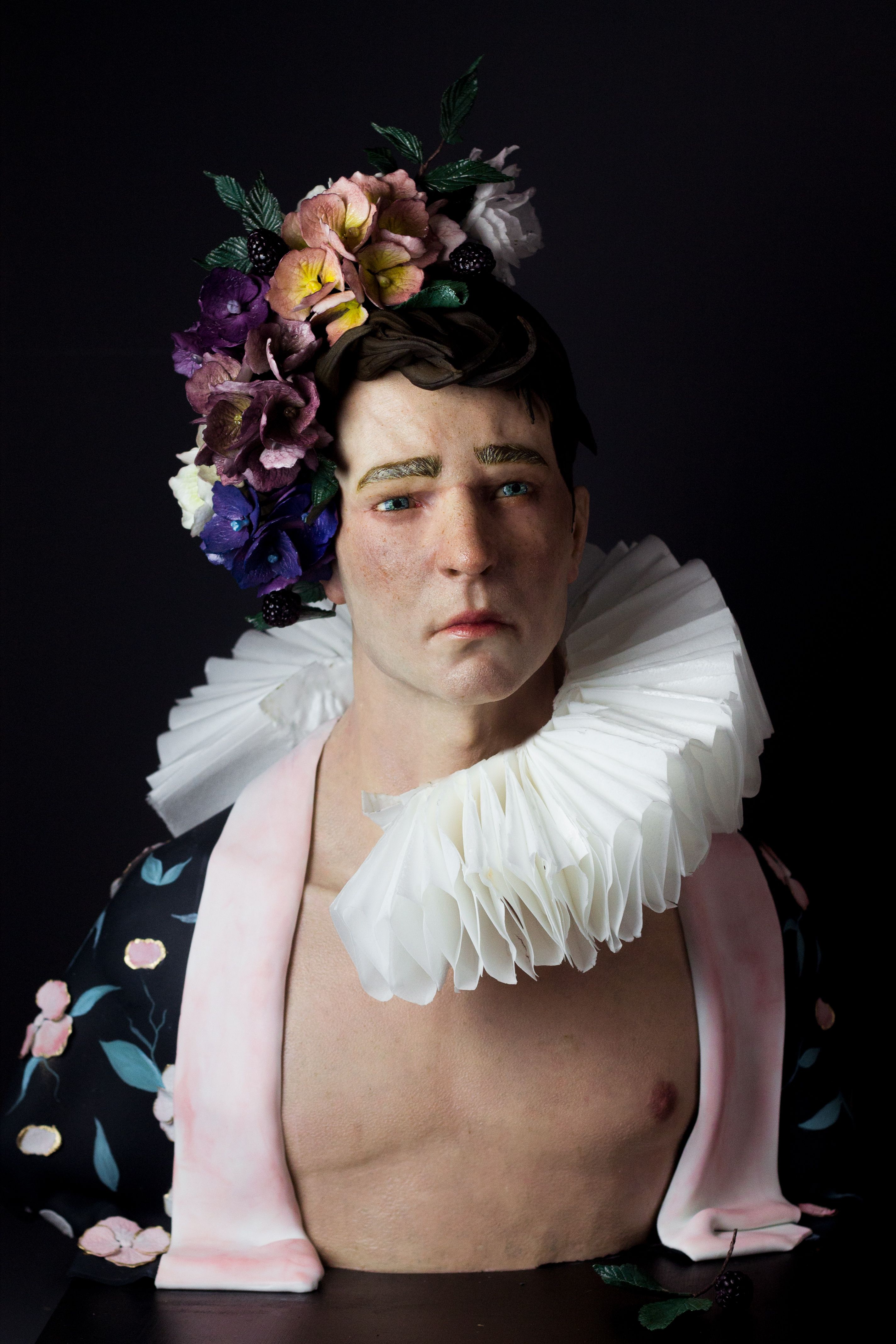 Escultura Comestible en bizcocho, chocolate moldeable y pastas de azúcar