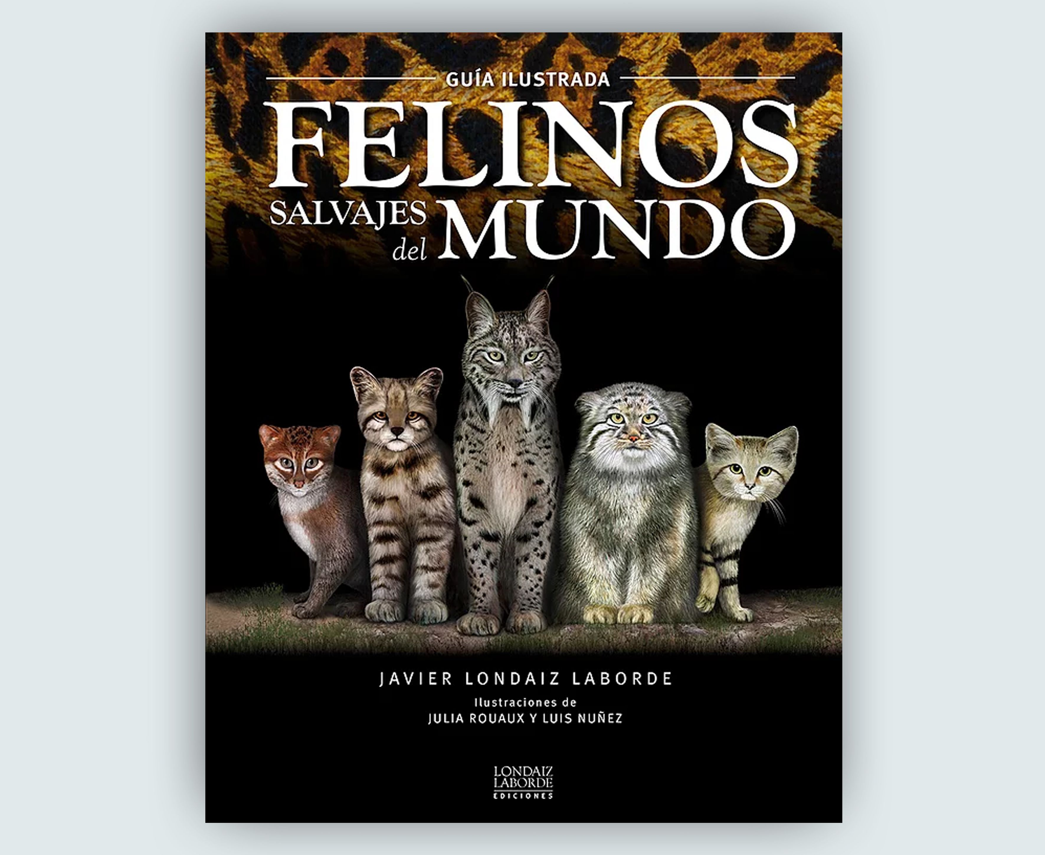 Ilustración de tapa del libro "Guía ilustrada de Felinos Salvajes del Mundo" (Ed. Londaiz Laborde).
