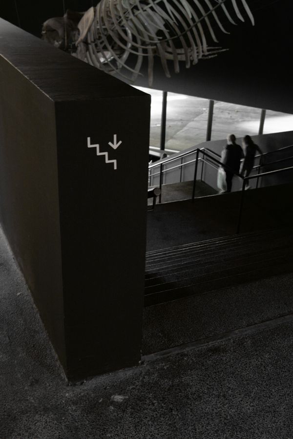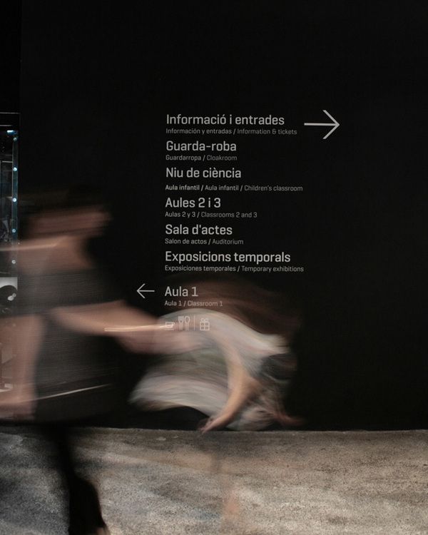 Señalización del Museu Blau, sede principal del reciente consorcio de entidades que forman el Nat, el Museu de Ciències Naturals de Barcelona. El briefing decía: "la señalización no puede contener volúmenes y no debe ser protagonista".