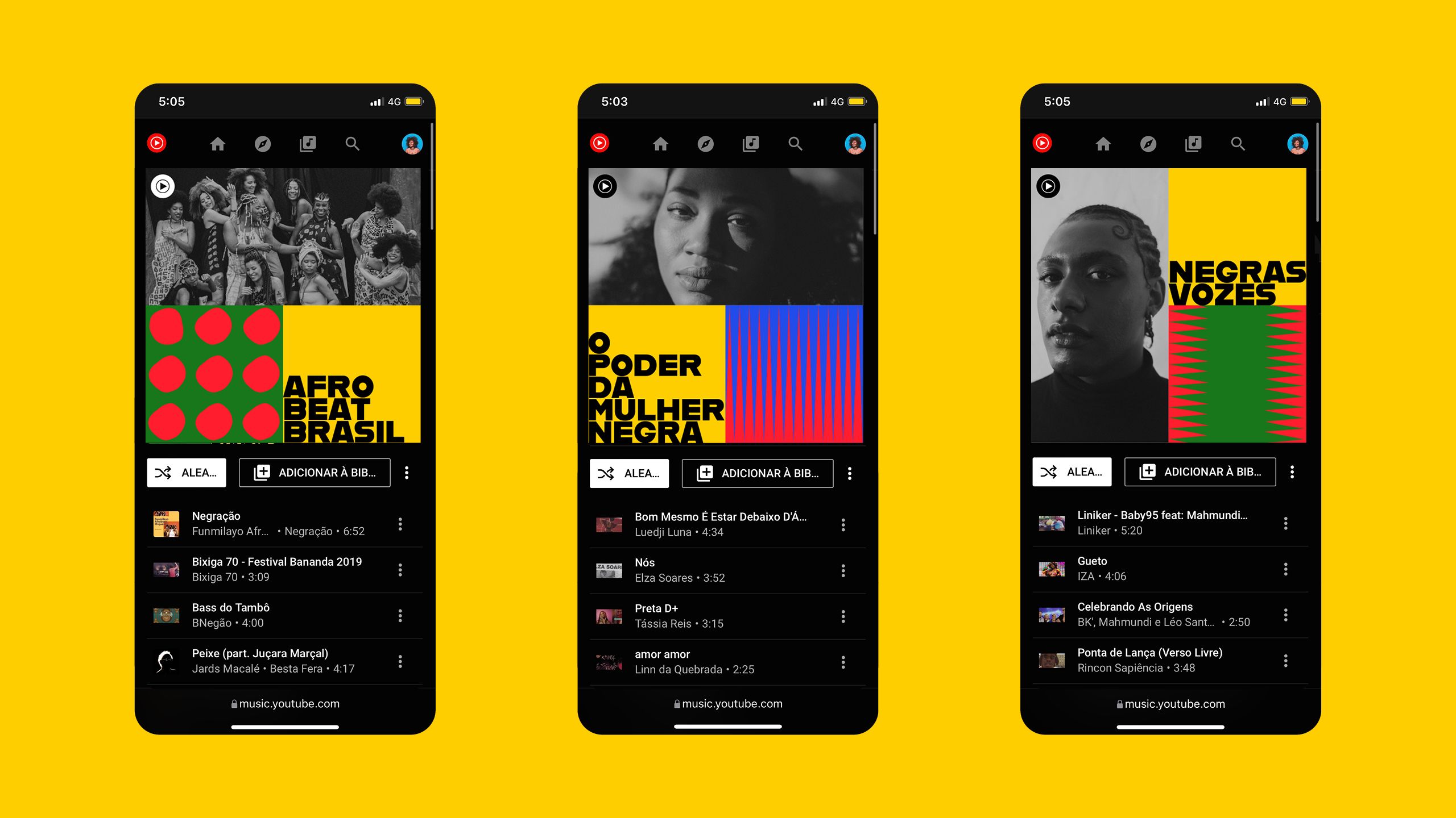 No mês de novembro de 2021, visando amplificar as vozes de artistas negros, o You Tube criou cinco playlists focadas em ritmos diferentes.